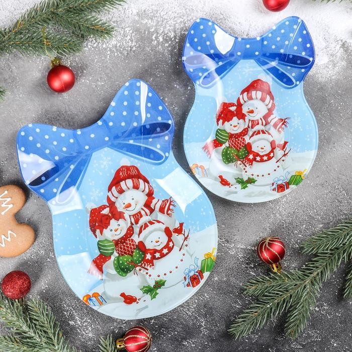 Блюдо сервировочное выполнено из стекла с ярким праздничным рисунком. Блюдо можно использовать для сервировки новогоднего стола и в повседневной жизни.