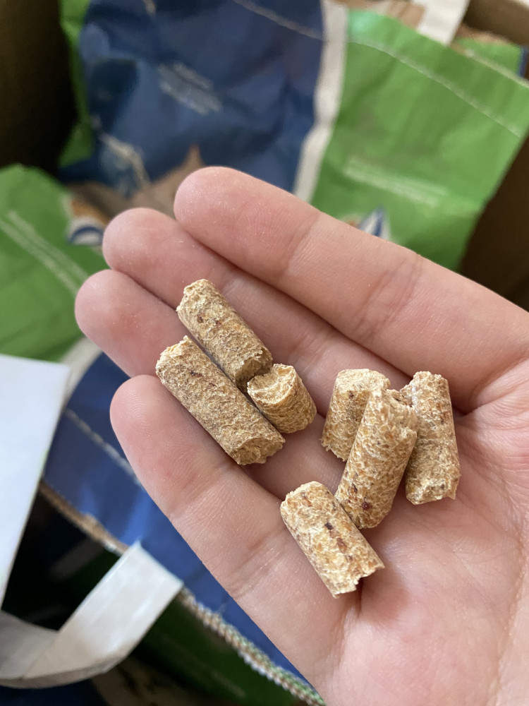 Хороший наполнитель, впитывает хорошо, но не комкуется. Гранулы постепенно рассыпаются и в лотке получаются опилки. Запах тоже хорошо впитывается.