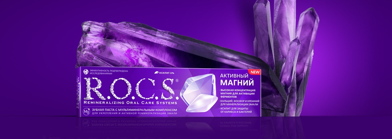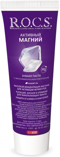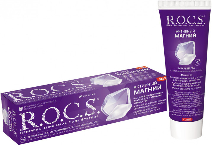 R.O.C.S. Зубная паста укрепляющая «Активный Магний»-20% +66 приятный вкус видимый эффект длительная свежесть