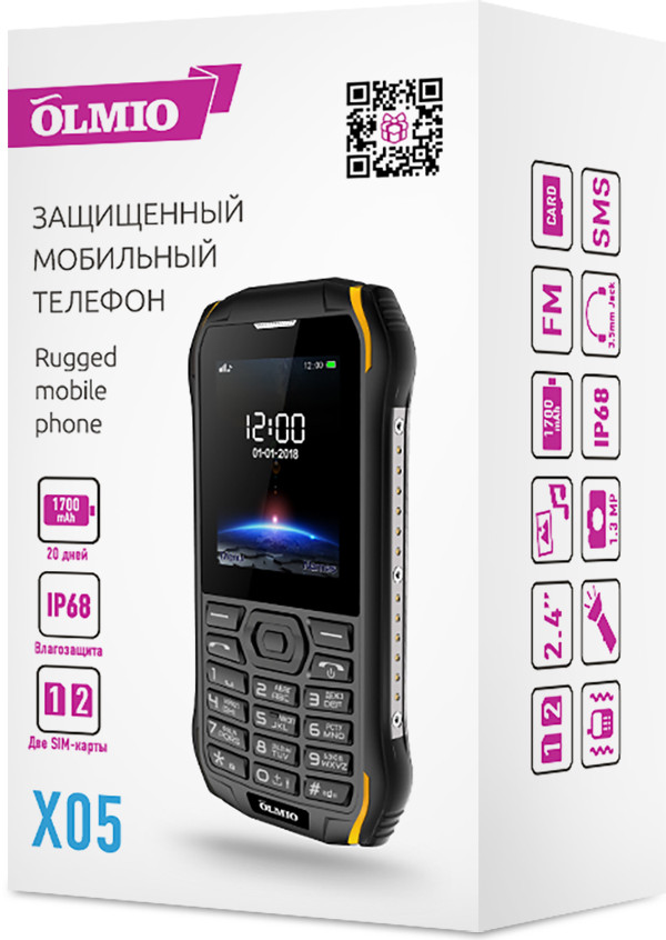 Современные смартфоны слишком хрупкие и ненадежные? Ищете аппарат, который не боится падений и не разрядится за день? К Вашим услугам защищенный телефон Olmio X05 с камерой 1.3 МП, эргономичной формой и высокой автономностью.