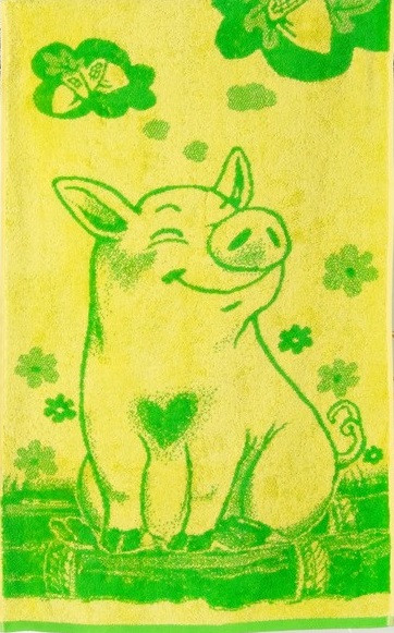 Понравилось, действительно яркое и мягкое, достаточно плотная махра. Рисунок веселый, но кого-то может смутить рисунок, хоть он и мультяшный. Не буду говорить из каких соображений. Взяла ребенку, родившемуся в год поросенка. Ей тоже понравилось. Заказала еще два зеленых (оранжевых больше не было).
