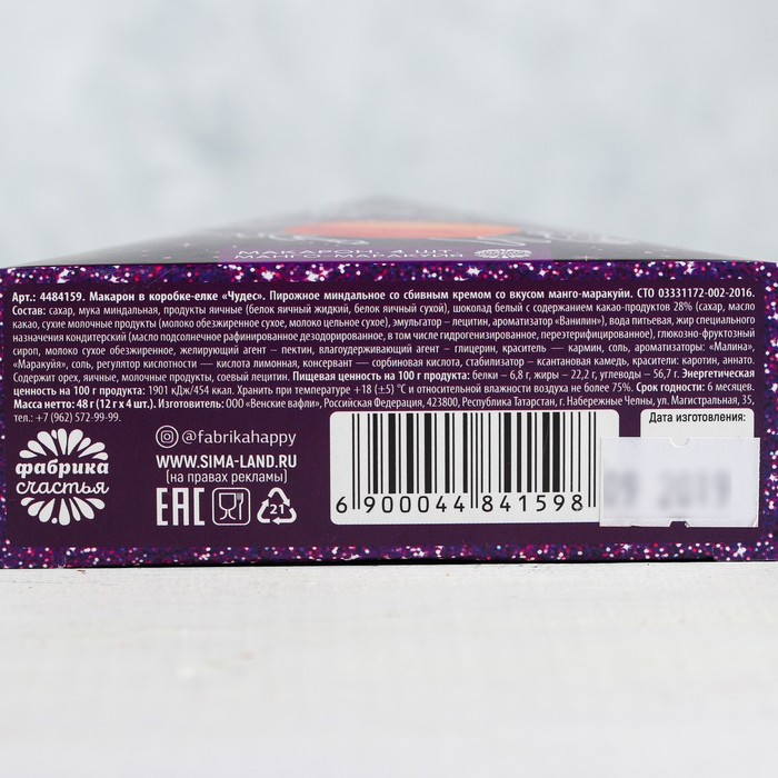 Фабрика счастья Макаруны со вкусом манго-маракуйи «Чудес»В данный момент этот товар отсутствует в продаже. Возможно, у нас найдется аналогичный или похожий товар здесь. Серия: Волшебные зверята Вам знакомо то чувство, когда невыносимо хочется чего-нибудь вкусного? В этом нет ничего страшного, баловать себя полезно, ведь сладкое повышает уровень эндорфинов — гормонов счастья. Пирожное миндальное со сбивным кремом в оригинальной новогодней коробке послужит отличным подарком для любителей сладкого. Это так приятно, когда подарок — это десерт. Да еще и десерт, исполняющий желания. Такой презент создан специально для людей, которым вы желаете всего самого хорошего. |