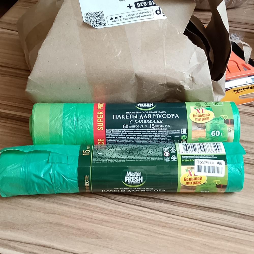 заказала два рулона мусорных пакетов,одинаковые. второй рулон был другого качества,не как на карточке товара, только бренд одинаковый
