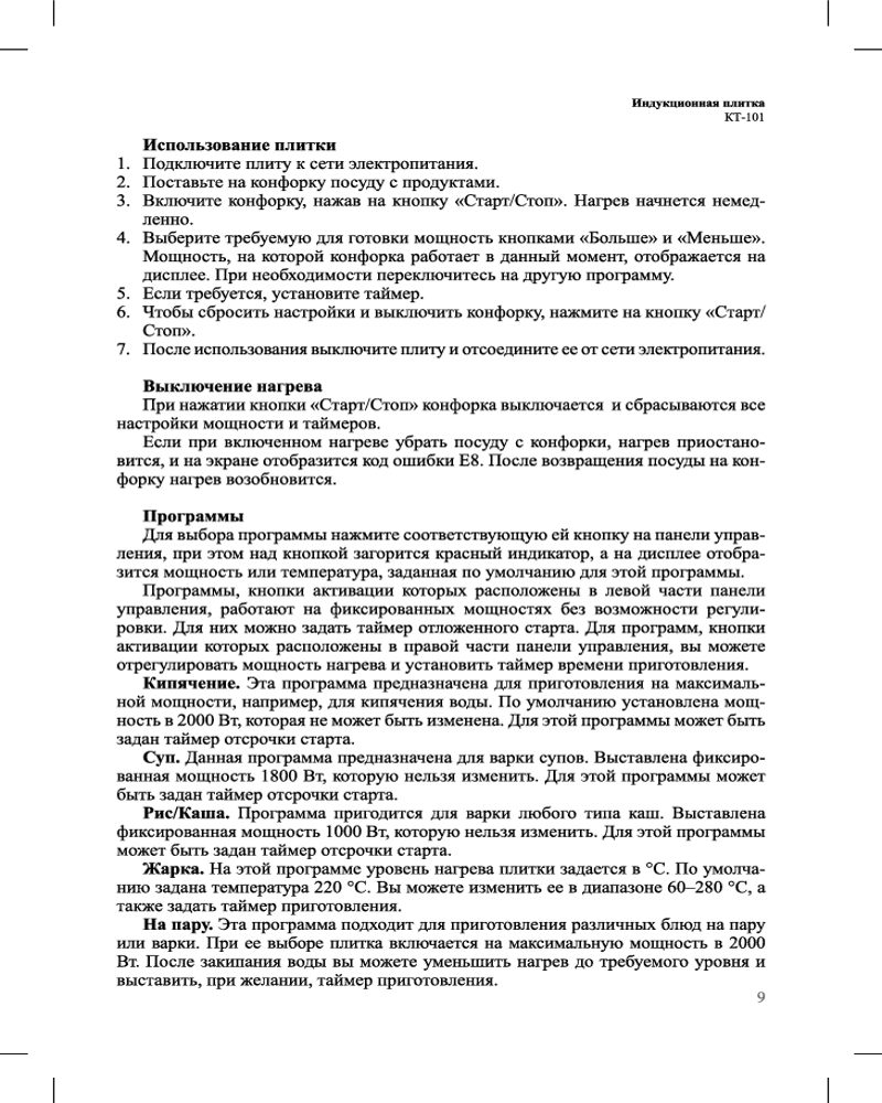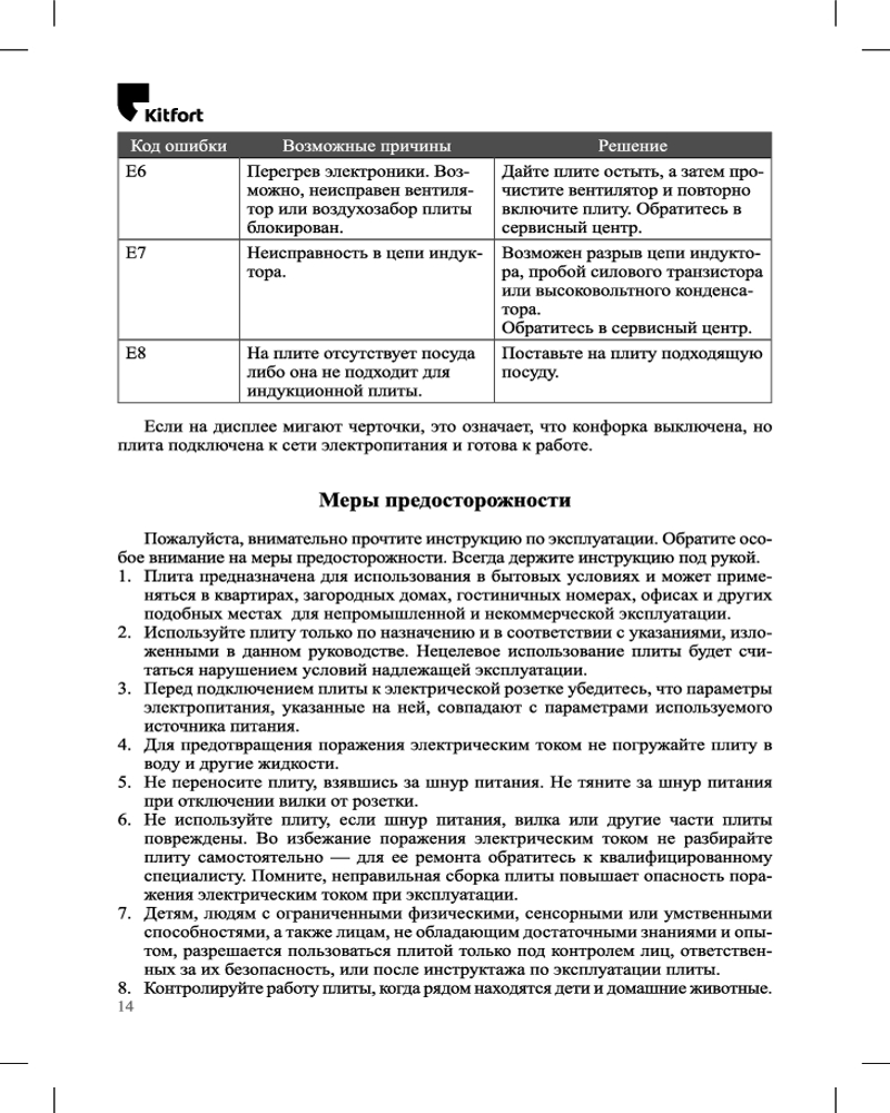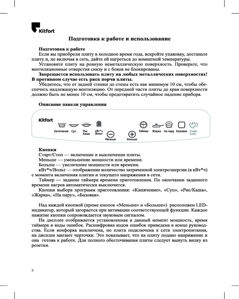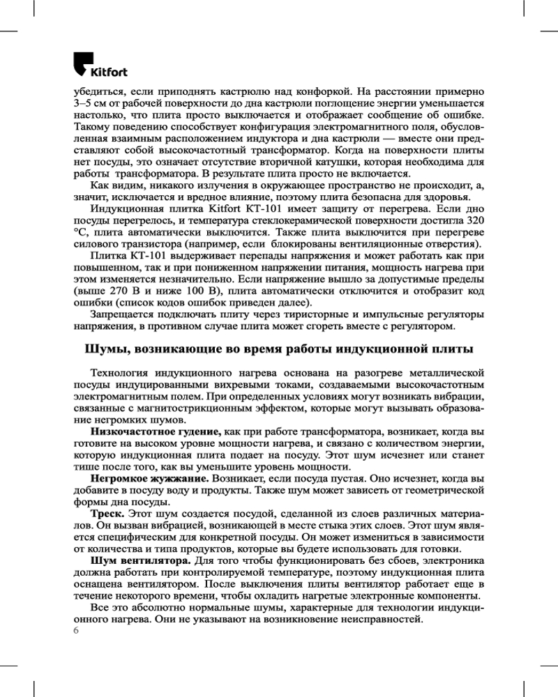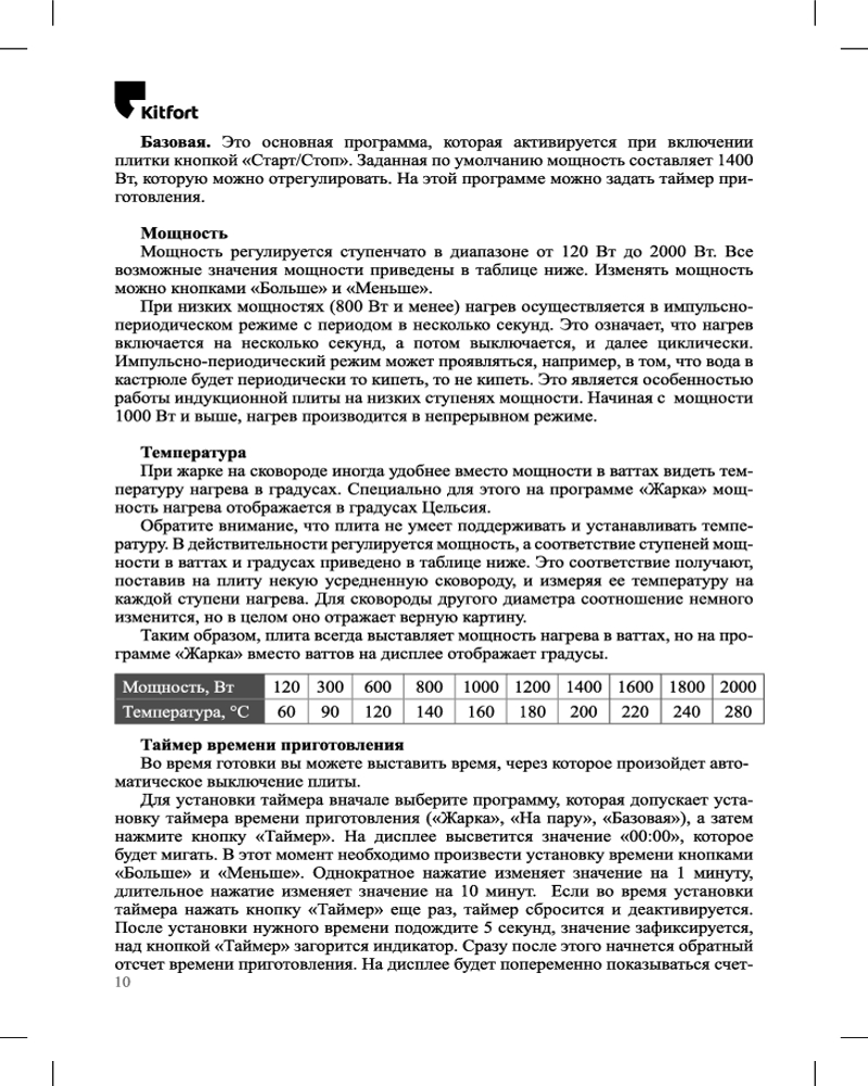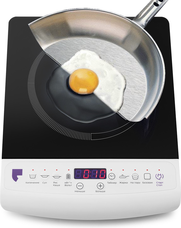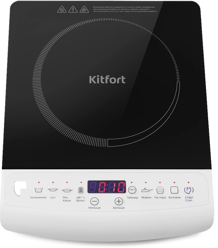 Индукционная плитка Kitfort КТ-101 — практична, экономична. Эта плита использует современные технологии, позволяющие готовить вкусно, быстро и абсолютно безопасно. Такая плита практически исключает вероятность получения ожогов и не нагревает воздух в помещении. Плитка имеет 10 температурных и мощностных режимов, а также 6 предустановленных программ. Есть таймер времени приготовления и отложенный старт, функции отображения энергопотребления и текущего напряжения в сети. Благодаря электронному управлению плитка устойчива к перепадам напряжения.