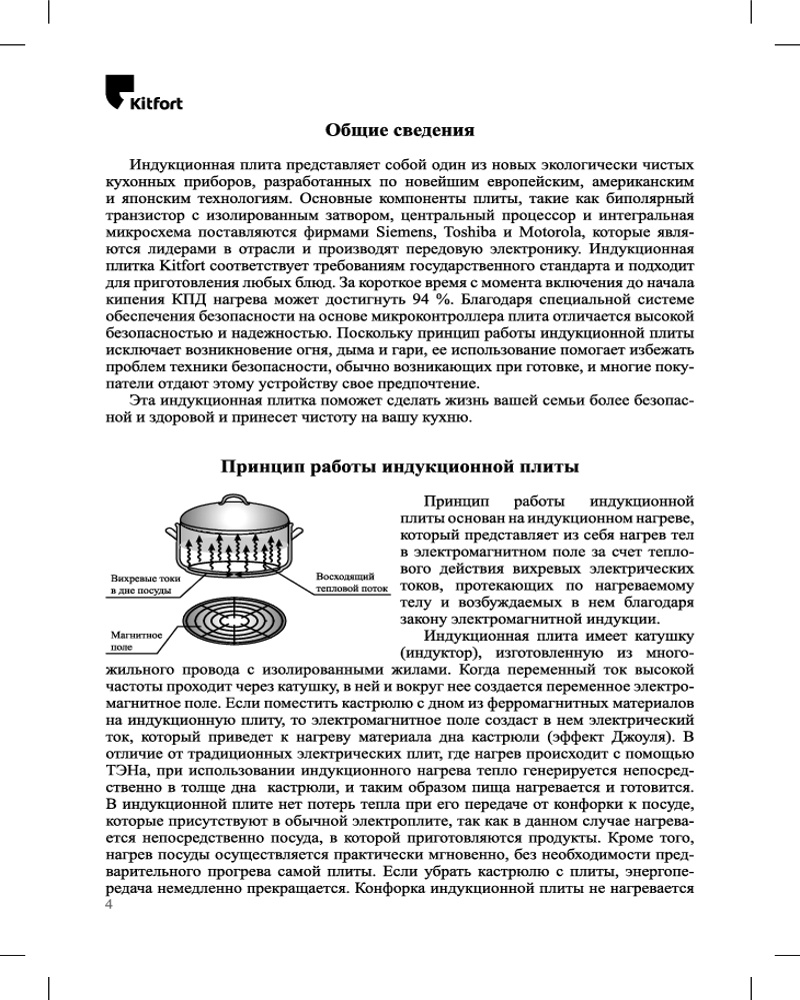 Настольная индукционная плитка Kitfort КТ-101 использует современные технологии, позволяющие готовить вкусно, быстро и абсолютно безопасно. Такая плита практически исключает вероятность получения ожогов и не нагревает воздух в помещении, а её КПД 90% гораздо выше, чем у других типов электрических плит. Еще одно любопытное и полезное свойство индукционной плиты KITFORT — высокая точность нагрева в месте, где находится посуда. Это означает, что в том месте, где площадь посуды заканчивается, плита нагревать уже не будет. В результате сокращаются потери энергии.