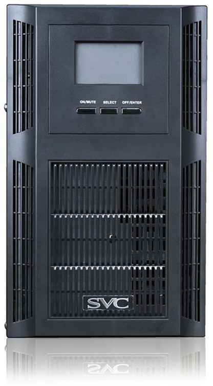Используется для защиты питания файловых серверов и АТС, а также любого другого оборудования, предъявляющего повышенные требования к качеству сетевого электропитания. Принцип работы состоит в двойном преобразовании (double conversion) тока. Сначала входное переменное напряжение преобразуется в постоянное, затем обратно в переменное напряжение с помощью обратного преобразователя (инвертора). При потере питания в городской сети, время переключения в автономный режим равно нулю.