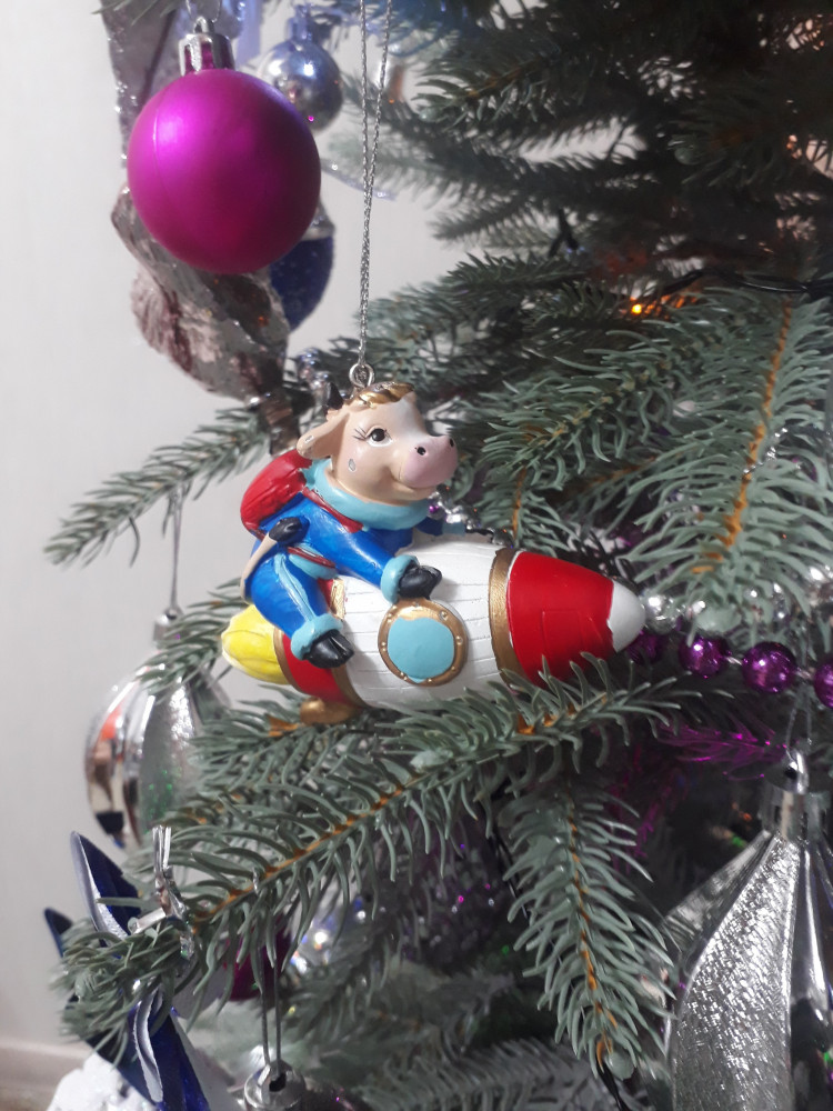 Коровка прекрасная, тяжелая. Как будто статуэточка. Вот вчера вечером повесила после того, как заказ получила. Вот теперь только не пойму. откололась краска на ухе и щеке. то ли я не доглядела и такой товар забрала ( хотя упакован был отлично), то ли доча уже успела испортить. расстроилась. так что будьте аккуратны. товар очень хрупкий как оказалось. ну и цена мне кажется все же высокой... но я решила собирать на память на елку все символы года. и чтобы красивые и качественные были, поэтому и взяла подороже так что к флипу претензий нет.