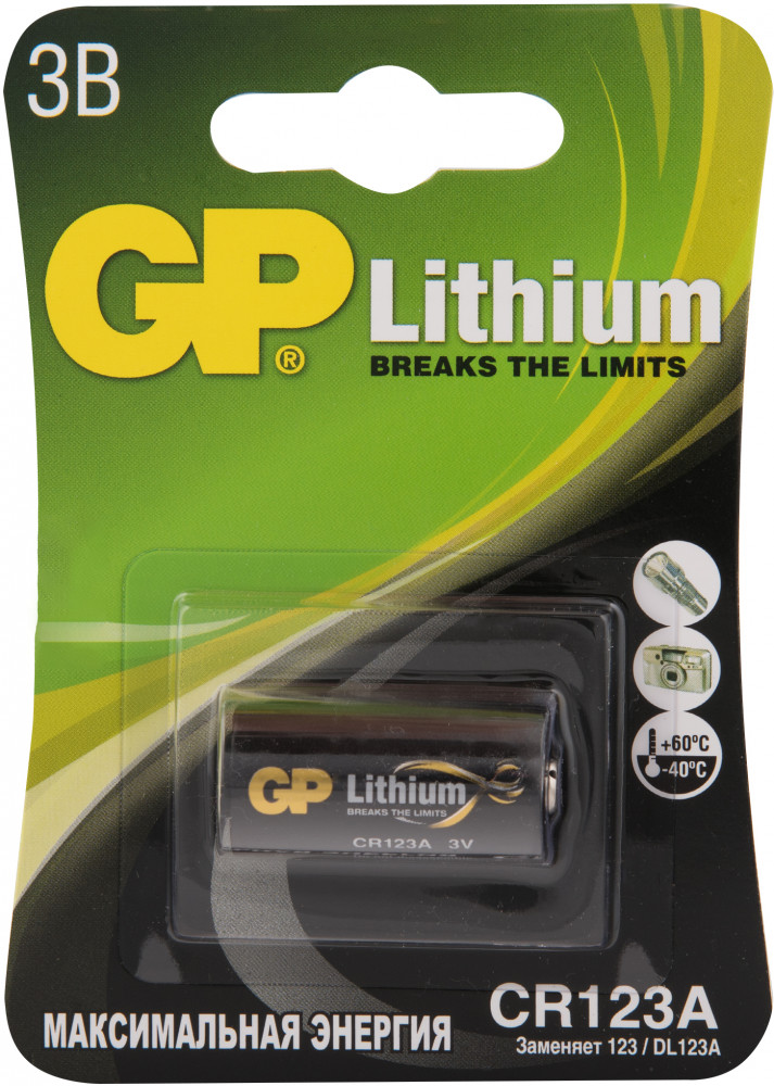 GP Батарейка литиевая CR123A+63 работает срок службы заряд держался совместимость надежность