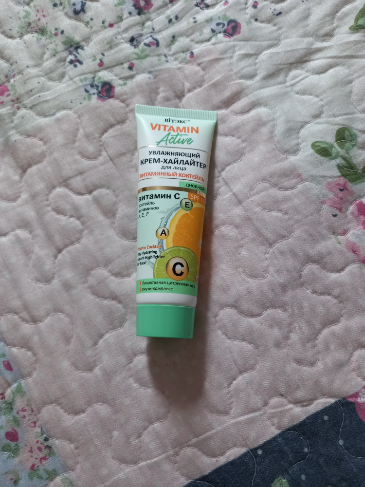 Серия: Vitamin Active Увлажняющий крем-хайлайтер для лица Витаминный коктейль из серии Vitamin Active от белорусского бренда Витэкс создан специально для кожи, которая нуждается в сильной витаминной подпитке. Витамин С проникает в глубокие слои эпидермиса, благодаря чему защищает кожу от негативного влияния свободных радикалов, стимулирует выработку коллагена, препятствуя при этом возникновению новых морщин. Крем-хайлайтер осветляет веснушки, пигментные пятна и следы постакне, придавая лицу ровный и нежный цвет. Продукт имеет природный УФ-фильтр SPF15, который обеспечивает защиту от ультрафиолета. |