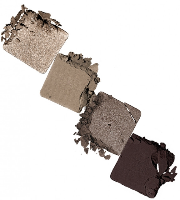 В моем случае цвет оказался как на фото (кофейный). Палетка маленького размера. Тени средние - "пылят", но тушуются довольно хорошо и держаться нормально.