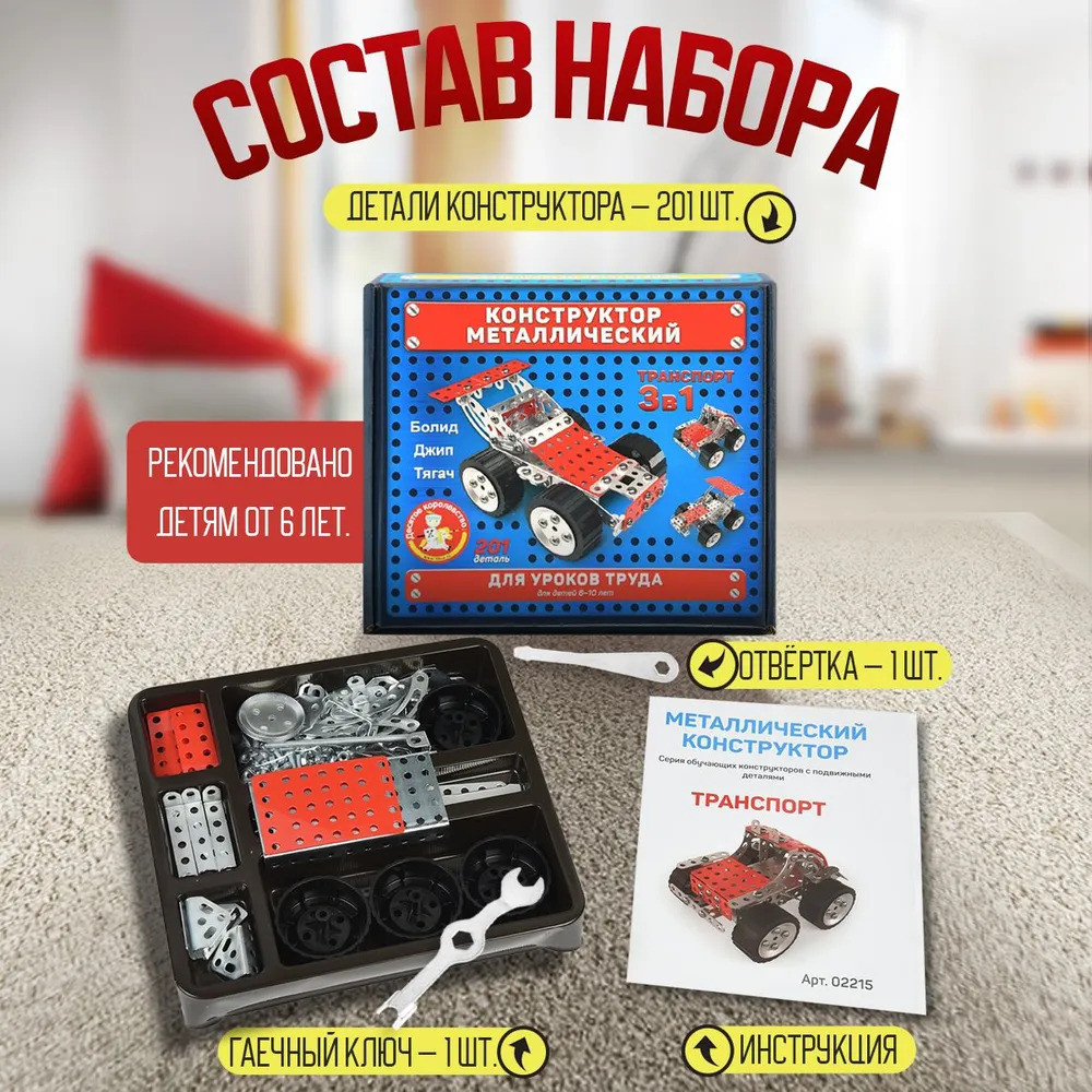 💳 Оплатить за товар можно при получении 🇰🇿 Есть бесплатная доставка по Казахстану от 1 дня 🎁 Копите бонусы с каждой покупки Серия: Конструктор металлический для уроков труда Этот металлический конструктор 3 в 1 позволит мальчишкам представить себя инженером, который проектирует и создаёт транспортное средство. В комплекте есть все для этого необходимое, поэтому от ребенка потребуется лишь аккуратность и внимательность при соединении пластин с отверстиями на корпусе между собой, используя болтики и гайки из комплекта. |