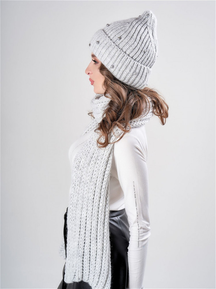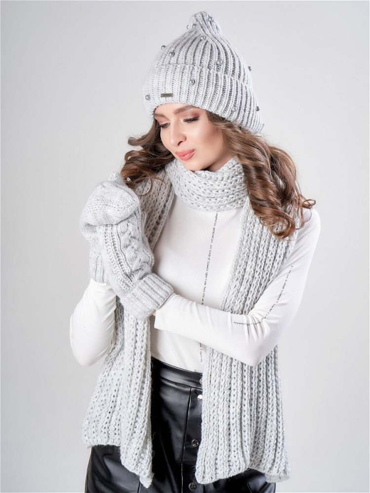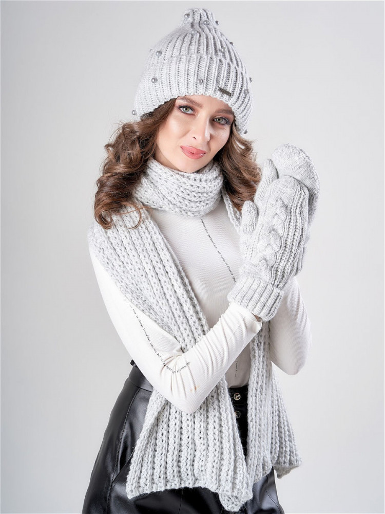 Комплект классный! Крупная вязка, приятный на ощупь, мягкий, уютный, теплый и нежный. Смотрится стильно, подходит к разным вариантам одежды, хоть к куртке, хоть к шубе хоть к пуховику. Я рада, что успела его заказать да ещё по такой привлекательной цене.