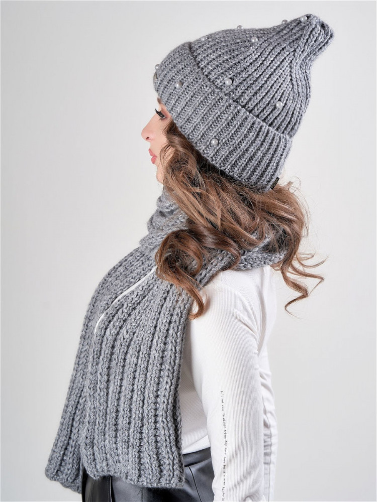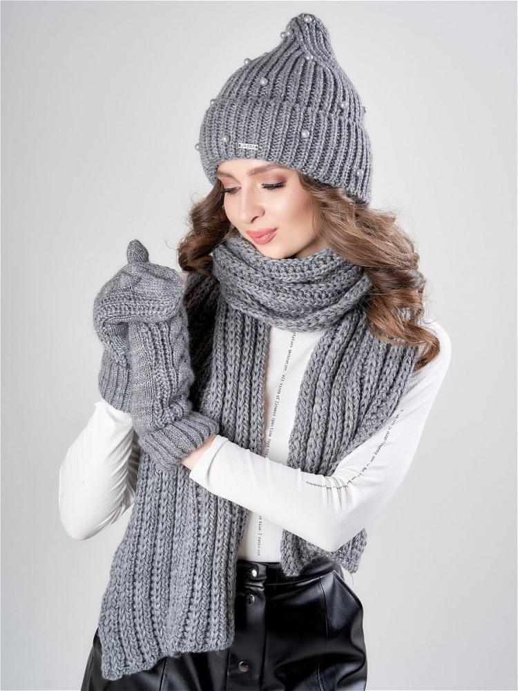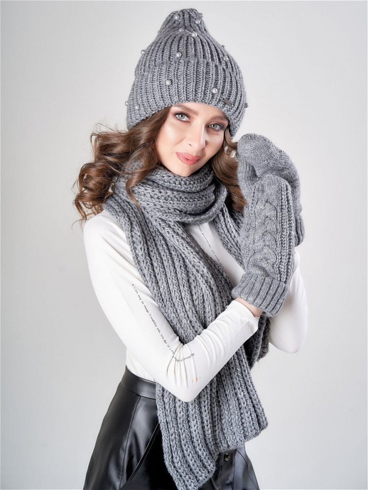 Комплект классный! Крупная вязка, приятный на ощупь, мягкий, уютный, теплый и нежный. Смотрится стильно, подходит к разным вариантам одежды, хоть к куртке, хоть к шубе хоть к пуховику. Я рада, что успела его заказать да ещё по такой привлекательной цене.
