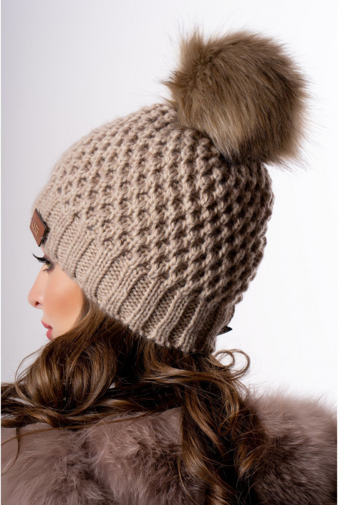 Я покупала темно-коричневую шапку. Шапка объёмная, тёплая. Вязка такая же, как на картинке. Внутри флис. Цвет, правда, отличается от фото за счёт наличия светлых нитей в пряже. На фото сайта шапка выглядит более насыщенного и красивого коричнево- шоколадного цвета. В реальности цвет светлее.. В целом сидит на голове сидит хорошо.