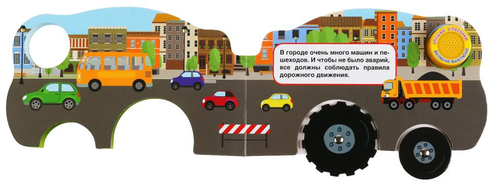 Красочная развивающая книга в игровой форме познакомит ребёнка с видами транспорта. Малыш с радостью будет рассматривать яркие иллюстрации, учиться и слушать песенки.