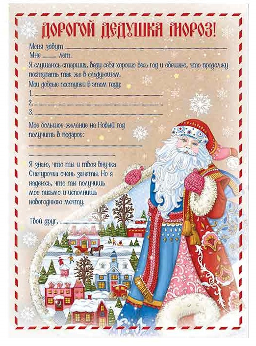 Комплект Письмо Дедушке Морозу принесет огромную радость ребенку! Выполненное на красивой бумаге, настоящее письмо для новогоднего волшебника вызовет восторг и позволит рассказать обо всех заветных желаниях.
