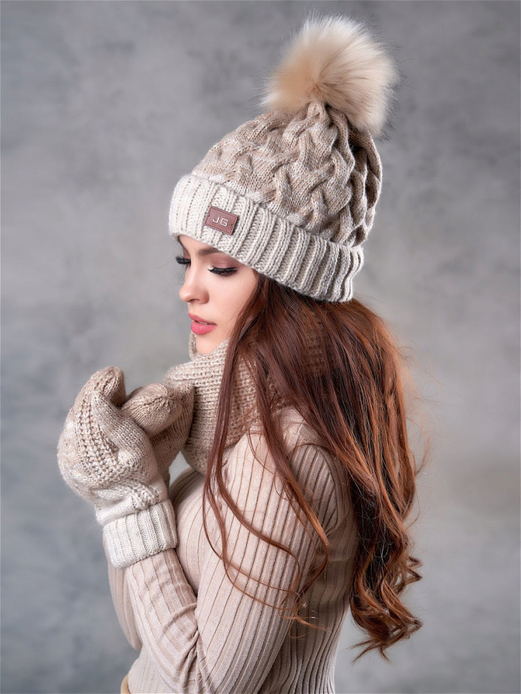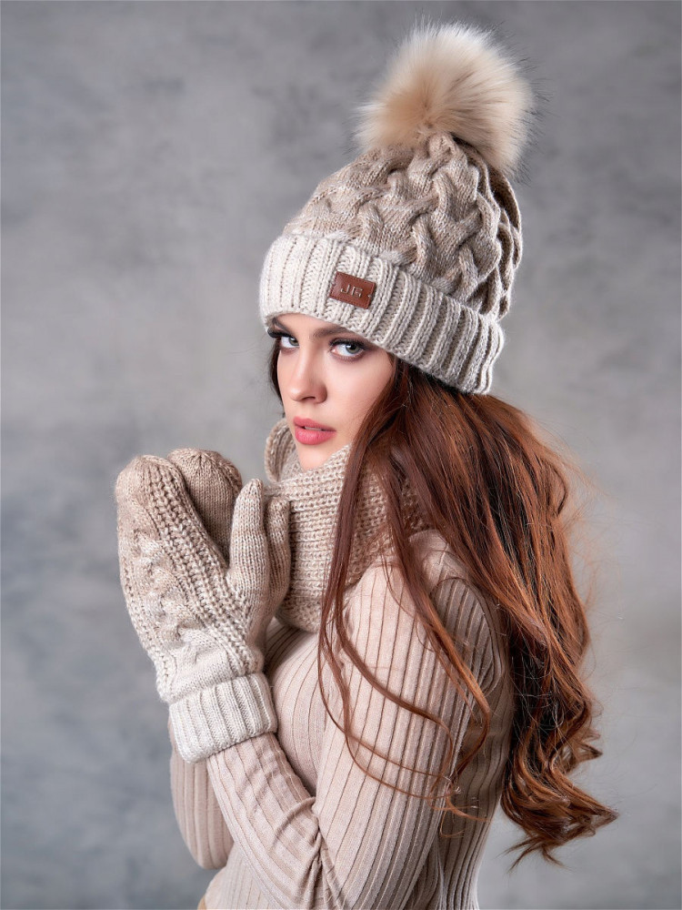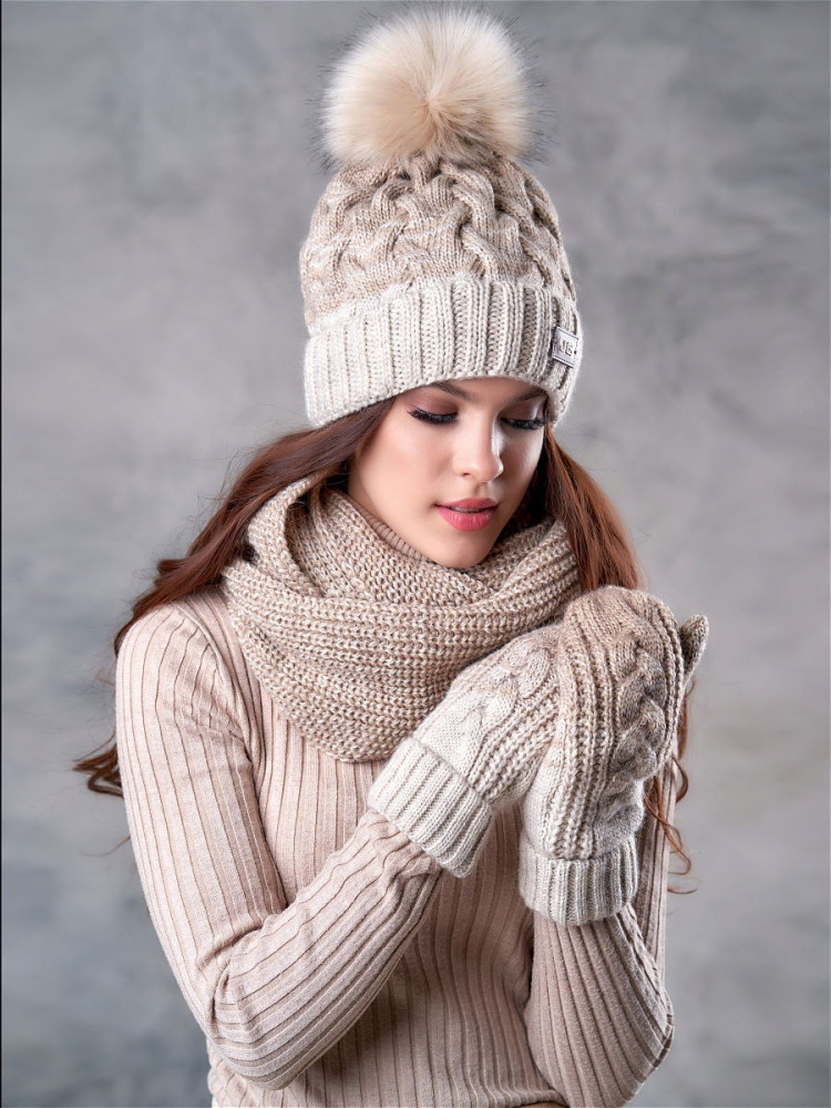 Комплект вызвал просто восторг и восищение! Белый светло-серый брала. Ооочень понправился. Всё пришло в упаковке, целое. 3 вещи. Очень тёплая шапка, плотно облегает лоб, пушистый понпон,совсем не продувает и голова не мрзнет. Хотя морозы в это году очень и очень -25,-30. Снуд обворачиваю 2 раза вокруг шеи. Обхватывает плотно. Мне можно и помягче. Но это нормуль. Растянется. Варешки толстые, тёплые. Я в восторге! Буду заказывать ещё. В других цветах. Тк оочень понравился комлект.