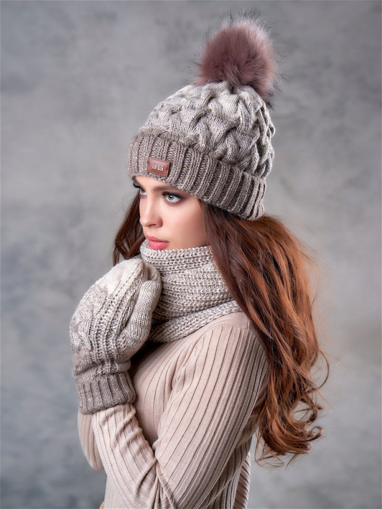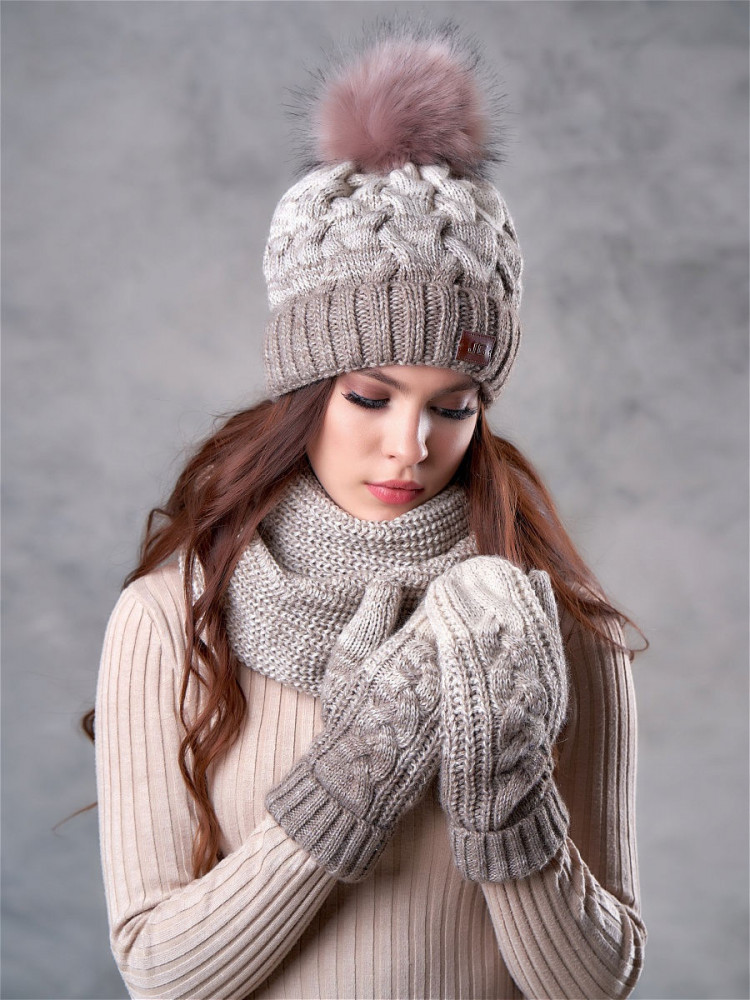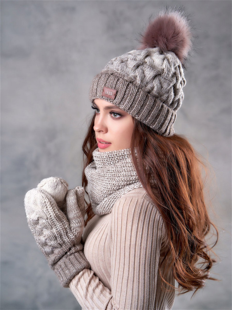 Комплект вызвал просто восторг и восищение! Белый светло-серый брала. Ооочень понправился. Всё пришло в упаковке, целое. 3 вещи. Очень тёплая шапка, плотно облегает лоб, пушистый понпон,совсем не продувает и голова не мрзнет. Хотя морозы в это году очень и очень -25,-30. Снуд обворачиваю 2 раза вокруг шеи. Обхватывает плотно. Мне можно и помягче. Но это нормуль. Растянется. Варешки толстые, тёплые. Я в восторге! Буду заказывать ещё. В других цветах. Тк оочень понравился комлект.