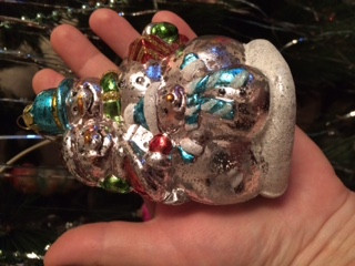 Мне понравилась идея семьи в одной игрушке, если бы краска не облезла можно было бы использовать как подарок идя в гости, а так чисто на нашу елочку. Легкая, большая.