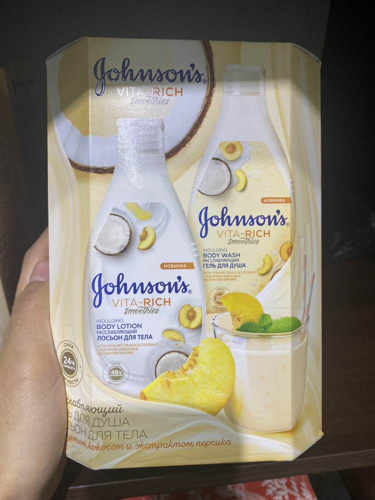 Johnson & Johnson Набор подарочный для ухода за телом «Расслабляющий»В данный момент этот товар отсутствует в продаже. Возможно, у нас найдется аналогичный или похожий товар здесь. Серия: Vita Rich Фруктовый смузи с йогуртом, кокосом и экстрактом персика для вашего тела — новинка от Johnson’s Vita-Rich. |