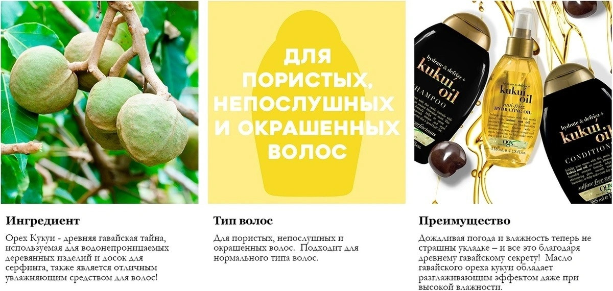 OGX Набор подарочный для гладкости и увлажнения волосВ данный момент этот товар отсутствует в продаже. Возможно, у нас найдется аналогичный или похожий товар здесь. Британский косметический бренд представляет роскошный подарочный набор Hydrate & Defrizz Kukui Oil, предназначенный для увлажнения и гладкости волос. Он продолжает «Тропическую серию» бренда и содержит редкий экзотический компонент — масло гавайского ореха кукуи, которое традиционно используется островитянами для ухода за волосами. |