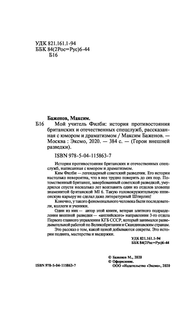 Мой учитель Филби. История противостояния британских и отечественных спецслужб, рассказанная с юмором и драматизмомВ данный момент этот товар отсутствует в продаже. Возможно, у нас найдется аналогичный или похожий товар здесь. Серия: Герои внешней разведки История противостояния британских и отечественных спецслужб, написанная с юмором и драматизмом. |
