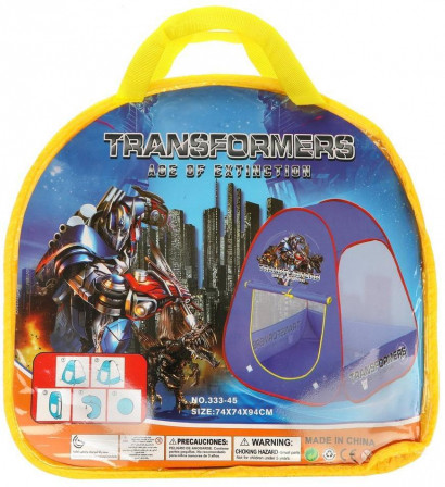 Наша игрушка Палатка игровая «Трансформеры»В данный момент этот товар отсутствует в продаже. Возможно, у нас найдется аналогичный или похожий товар здесь. Эффектная палатка «Трансформеры» обязательно понравится ребёнку и станет его любимым местом для весёлых игр! Изделие легко складывается и раскладывается, а в сложенном виде очень компактно и не занимает много места. Залезть вовнутрь можно через специальную дверцу, закрывающуюся при помощи липучек. |