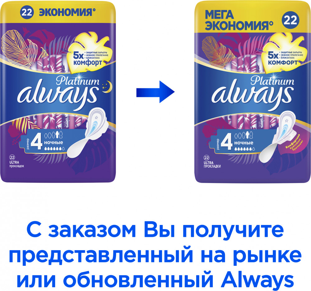 Always Прокладки гигиенические женские «Ночные», размер 4, 22 шт.