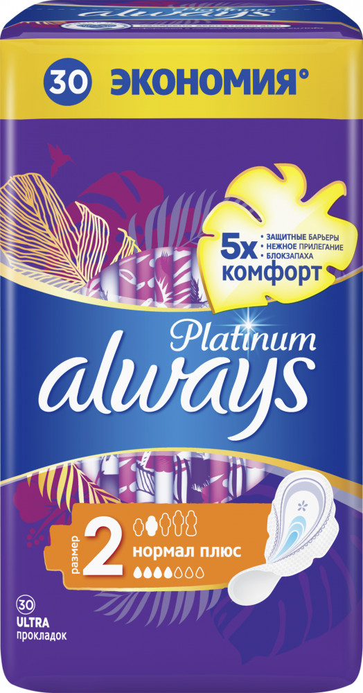 Always Прокладки гигиенические женские с крылышками «Нормал Плюс», размер 2, 30 шт.