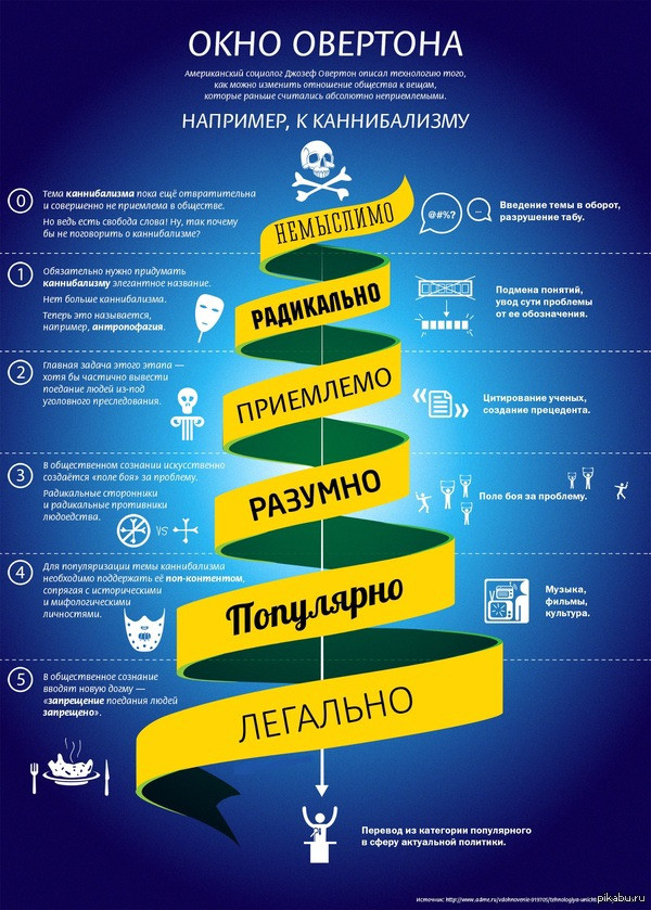 Неплохое чтиво для тех, кто понимает про «Окно Овертона». Книга описывает в большей степени последствия и через «читинг», якобы, появившемся вирусом. Про саму механику, как привести каннибализм от немыслимого к легальному информации приводится мало.