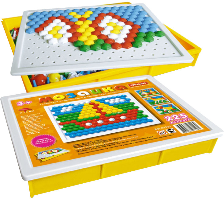 Stellar МозаикаВ данный момент этот товар отсутствует в продаже. Возможно, у нас найдется аналогичный или похожий товар здесь. Мозаика хорошо развивает моторику рук, образное мышление и воображение. Из разноцветных фишек ребенок может создавать различные изображения на игровом поле. Детали мозаики — в форме шестигранников, на ножках. Поле прямоугольное. |