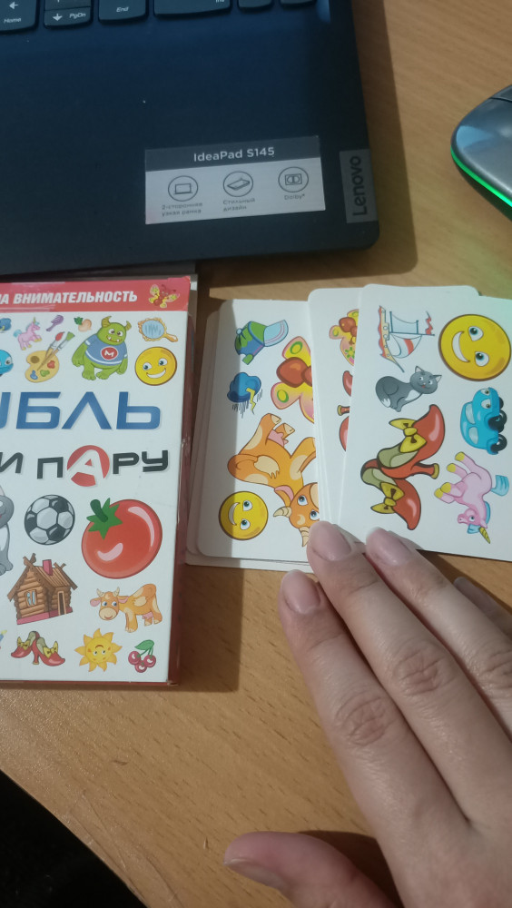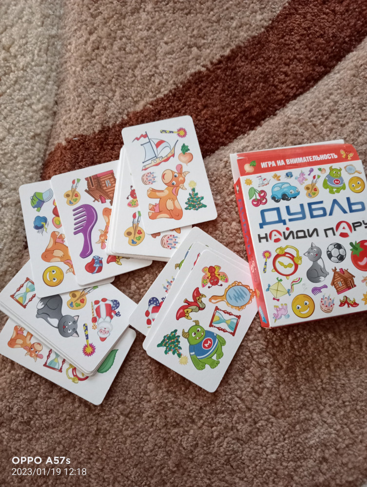 брали ребенку 5 лет, игра всем понравилась, играем с удовольствием , играют и дети 7 и 9 лет, игра на внимательность , карточки яркие и плотные