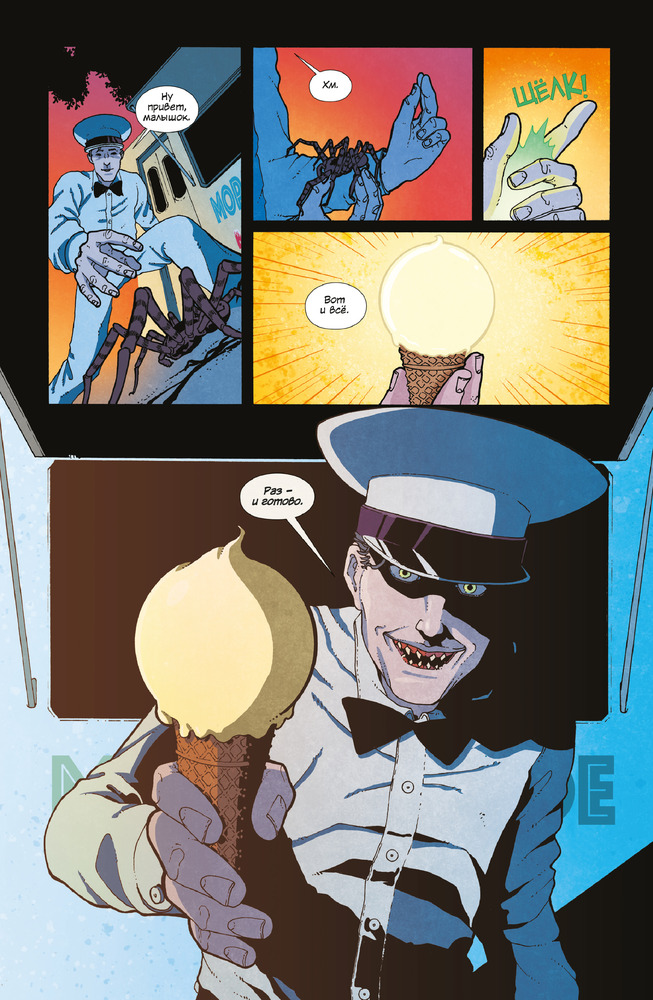 Мороженщик. Том 1. Радужная обсыпкаВ данный момент этот товар отсутствует в продаже. Возможно, у нас найдется аналогичный или похожий товар здесь. Серия: Комильфо. Альтернативные комиксы «Мороженщик» — эталонная серия в жанре рассказов о горести, чуде и спасении. Каждая история знакомит нас с разными странными персонажами, копающимися в своей приторной порции страданий. И где-то на окраине всех этих событий, словно весёленькая музыка его яркого фургончика, стоит Мороженщик... ткач историй, продавец вкусностей. Друг. Враг. Бог. Демон. Человек, который щёлкает пальцами: раз — и готово. Теперь ваша жизнь изменится навсегда. |