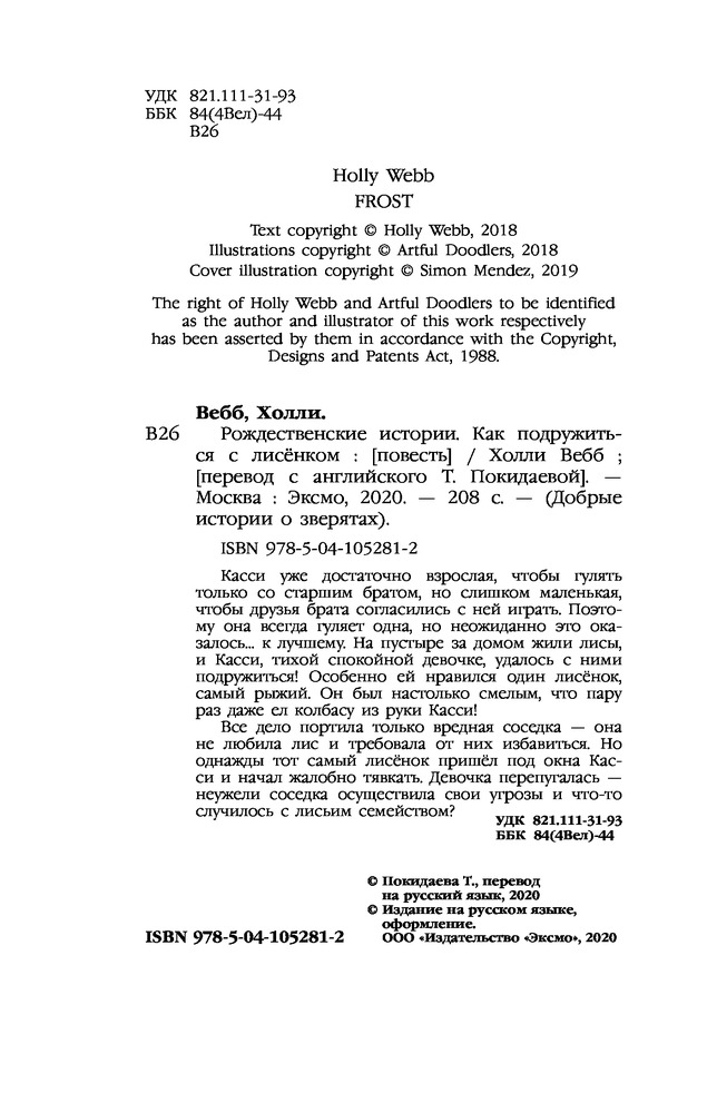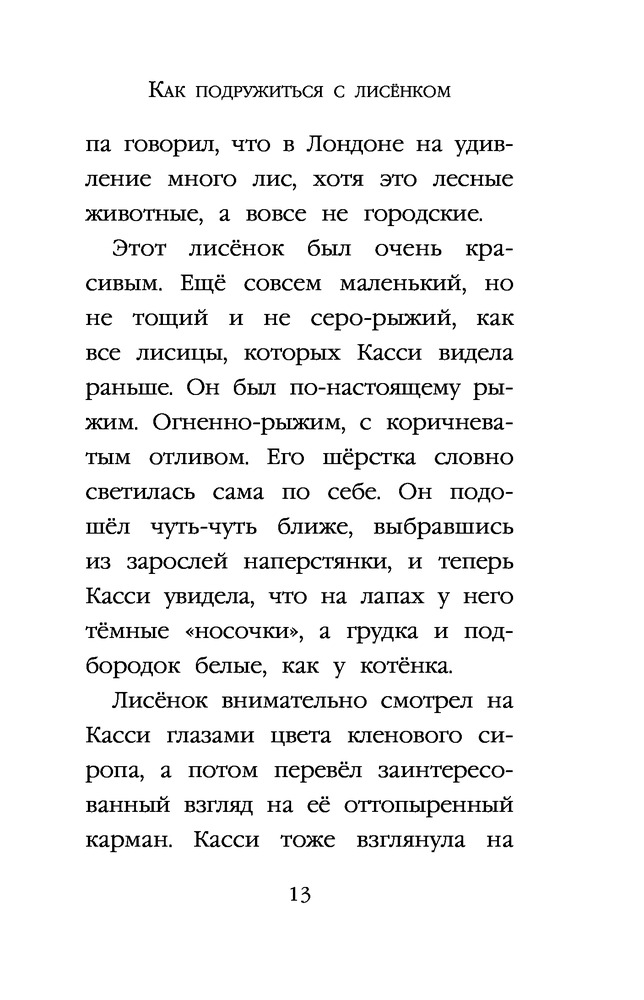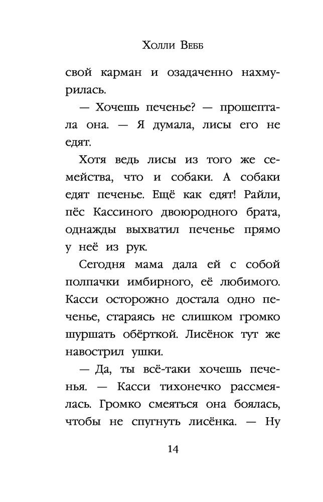 Серия: Детск. Холли Вебб. Добрые истории о зверятах. Мировой бестселлер Касси уже достаточно взрослая, чтобы гулять только со старшим братом, но слишком маленькая, чтобы друзья брата согласились с ней играть. Поэтому она всегда гуляет одна, но неожиданно это оказалось... к лучшему. На пустыре за домом жили лисы, и Касси, тихой спокойной девочке, удалось с ними подружиться! Особенно ей нравился один лисёнок, самый рыжий. Он был настолько смелым, что пару раз даже ел колбасу из руки Касси! |