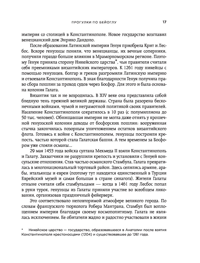 Стамбул. Перекресток эпох, религий и культурВ данный момент этот товар отсутствует в продаже. Возможно, у нас найдется аналогичный или похожий товар здесь. Серия: Биография великих городов мира Стили и эпохи, традиции и судьбы, прошлое, настоящее и будущее затейливо и непредсказуемо переплетаются в этом городе, подобно узору на коврах его мечетей. Как и несколько веков назад, здесь пьют чай из стеклянных стаканчиков и жарят скумбрию на пристанях. В автомобильном потоке маневрируют торговцы, несущие на головах деревянные подносы с товаром. Люди смешиваются в пестрый и многоликий поток, растекающийся по улицам, как кровь по венам. Это — шумное дыхание Стамбула, его неровно бьющийся пульс, его рваный ритм и негасимый внутренний огонь — живой и жаркий. |