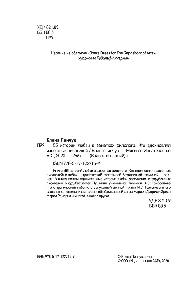 💳 Оплатить за товар можно при получении 🇰🇿 Есть бесплатная доставка по Казахстану 🎁 Копите бонусы с каждой покупки Серия: Классика лекций Книга «55 историй любви в заметках филолога. Кто вдохновлял известных писателей» о любви — трагической, счастливой, безответной, взаимной — разной! В книгу вошли удивительные истории любви российских и зарубежных писателей: о судьбах детей Пушкина, уникальной личности А.С. Грибоедова и его трагической гибели, о запутанной личной жизни И.С. Тургенева и его сложных отношениях с матерью, об обжигающей связи Марлен Дитрих и Эриха Марии Ремарка и многое-многое другое. |