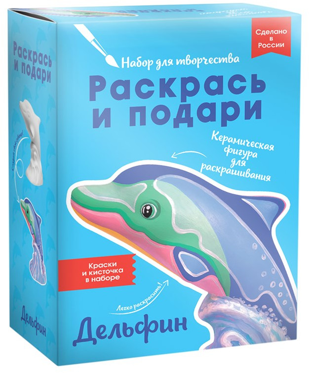 Набор для творчества «Дельфин» понравится всем юным художникам! В наборе уже есть все необходимое, чтобы создать красивый сувенир, который станет достойным украшением любой детской комнаты. В красивой красочной коробке вы найдете керамическую фигуру, краски, кисточку. Проявите фантазию, смешайте краски и создайте свой уникальный сувенир.