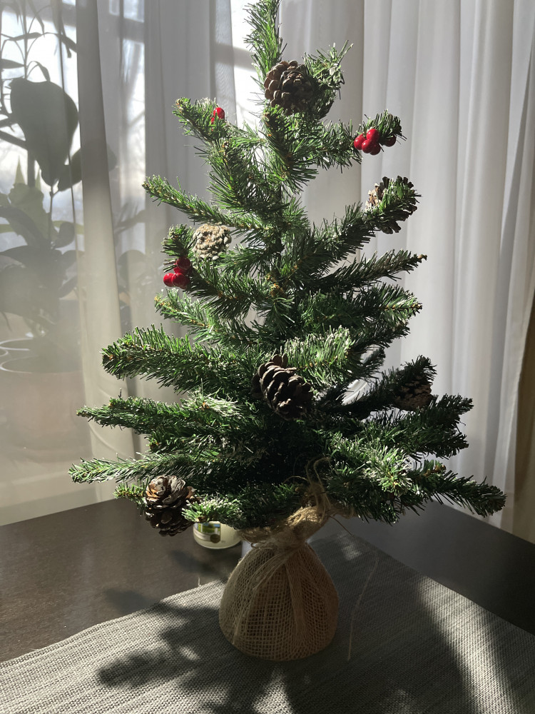 Честно говоря, разочарована видом ёлочки. Не такая, как на фотографии. Если украсить может с огнями будет выглядеть лучше.