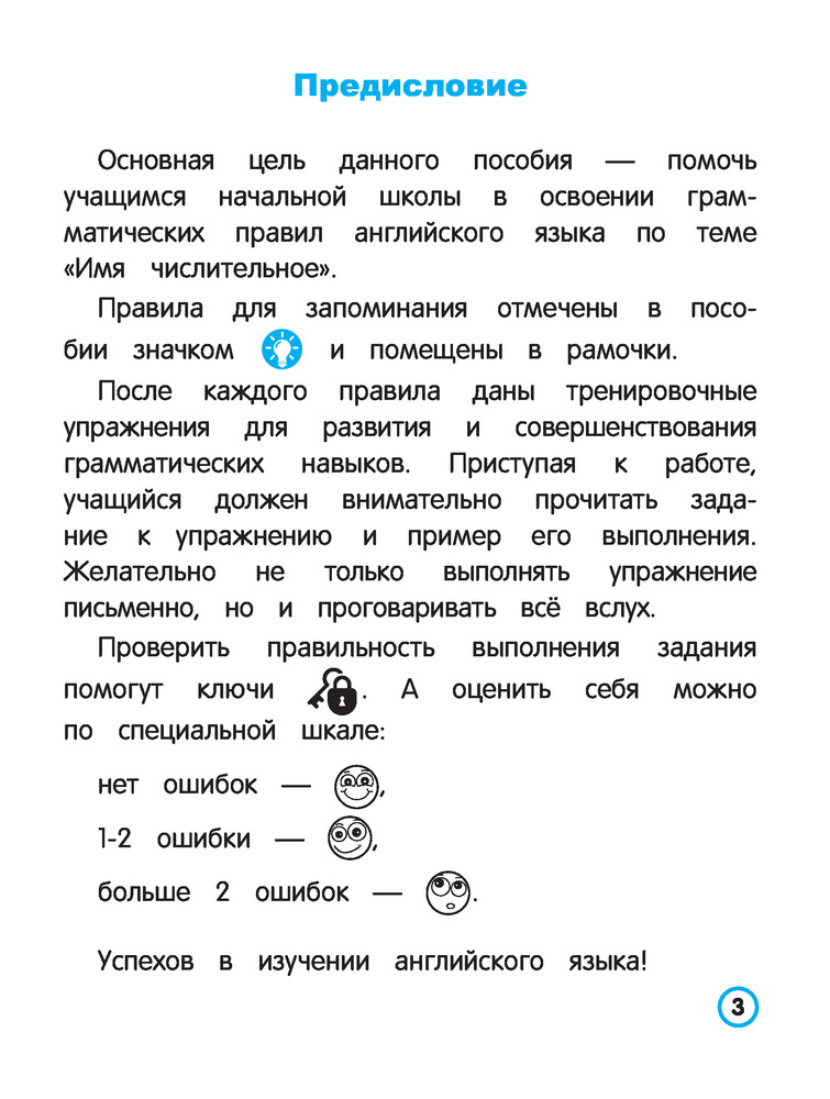 Даны упражнения на количественные и порядковые числительные и их употребление в различных ситуациях (примеры, сочетание с существительными, возраст, время, цена товаров, расписание уроков, календарь: дни недели, месяцы, даты). Купила все брошюры из этой серии. Рекомендую.