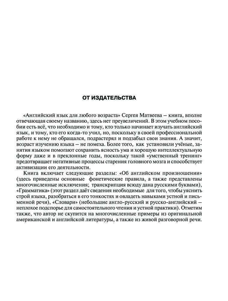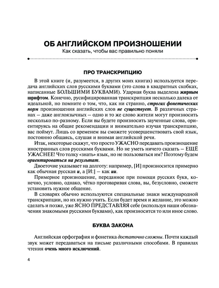 Серия: Самый полезный самоучитель Хотите освоить английский язык, но это кажется невыполнимой задачей? Эта книга изменит ваше мнение и поможет сделать первые уверенные шаги в изучении английского языка. В этом издании собрано все самое необходимое: правила произношения английских слов, английская грамматика с простыми и понятными объяснениями и яркими примерами, слова и выражения, которые помогут вам в общении, словари и многое другое. |