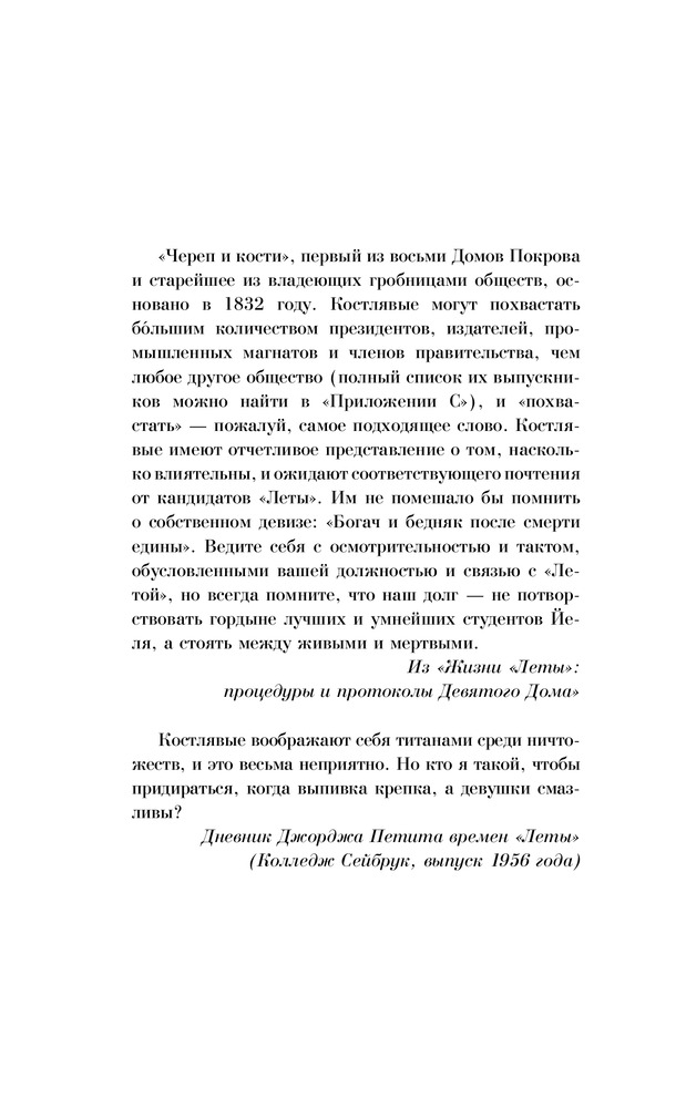 💳 Оплатить за товар можно при получении 🇰🇿 Есть бесплатная доставка по Казахстану от 1 дня 🎁 Копите бонусы с каждой покупки Алекс Стерн не похожа на других первокурсников Йельского университета. Она выросла на задворках Лос-Анджелеса, рано бросила школу, дружила с плохими парнями и перебивалась случайными заработками. В двадцать лет Алекс выжила в ужасной бойне — и благодаря этой трагедии загадочным образом получила шанс стать студенткой одного из самых престижных университетов мира. Почему она? И в чем тут подвох? В Нью-Хейвене к вопросам, которые терзают Алекс, прибавляются новые. Запрещенная магия, секретные общества, порочная элита Лиги плюща... Что за страшные тайны скрываются в древних, благопристойных стенах Йеля? |