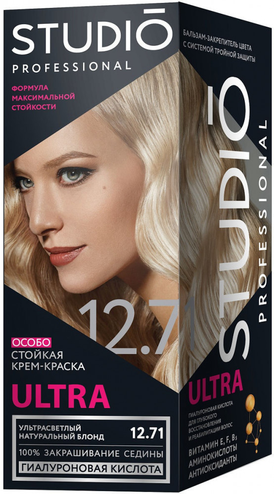 Studio Professional Крем-краска для седых волос, оттенок 12.71 Ультрасветлый натуральный блонд