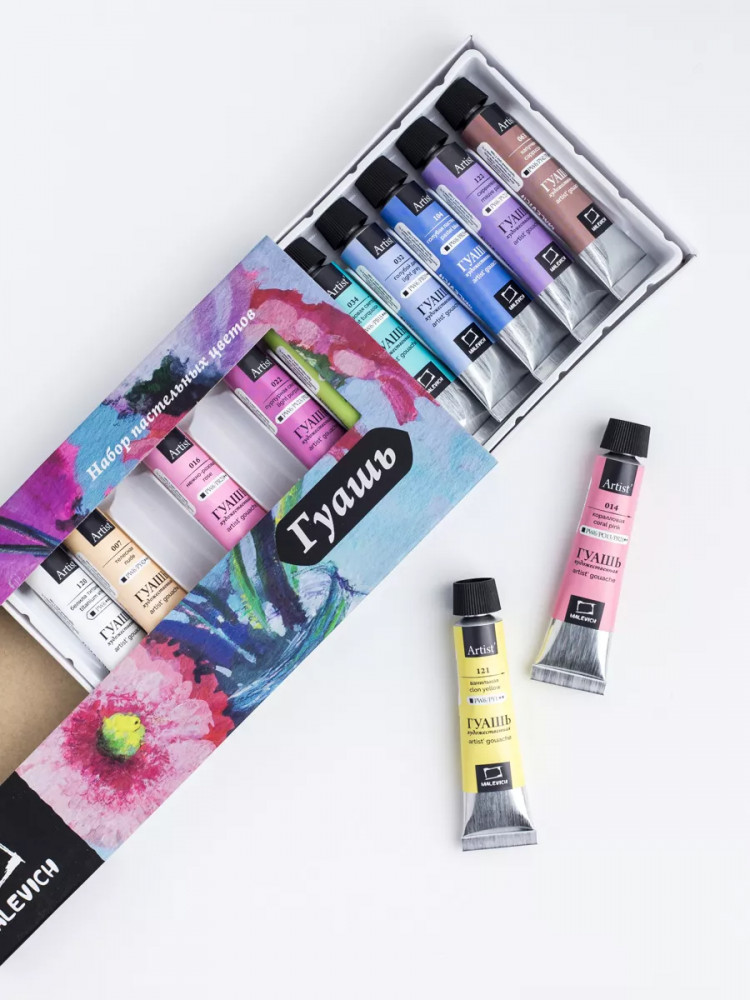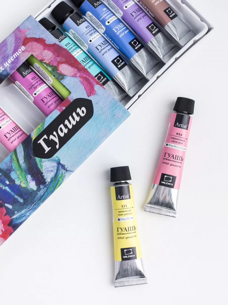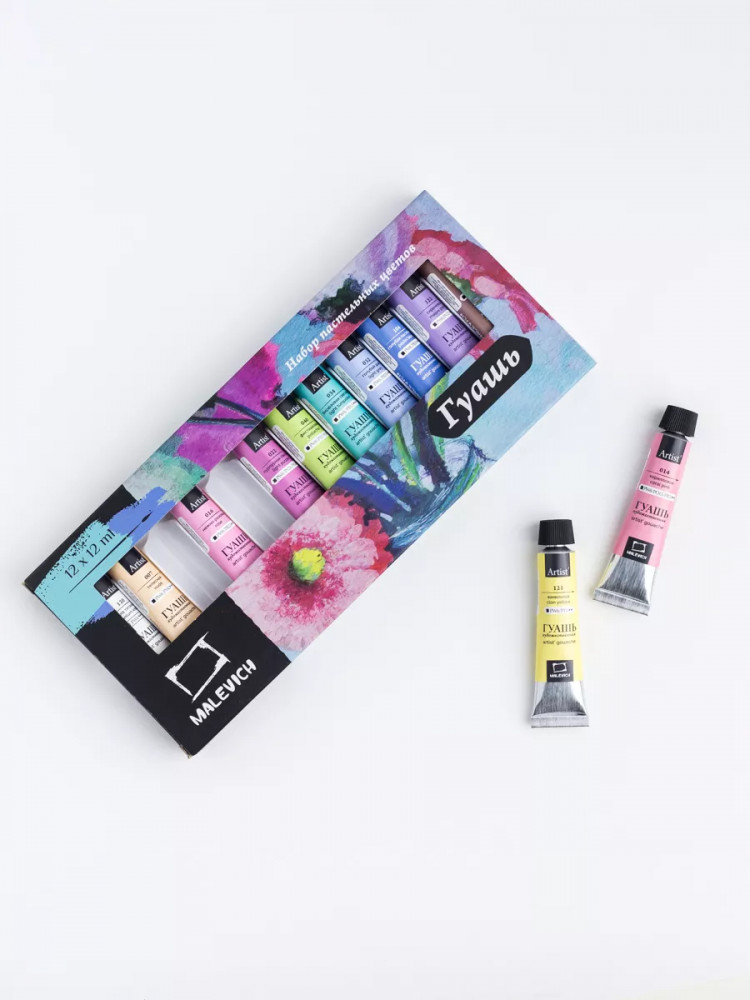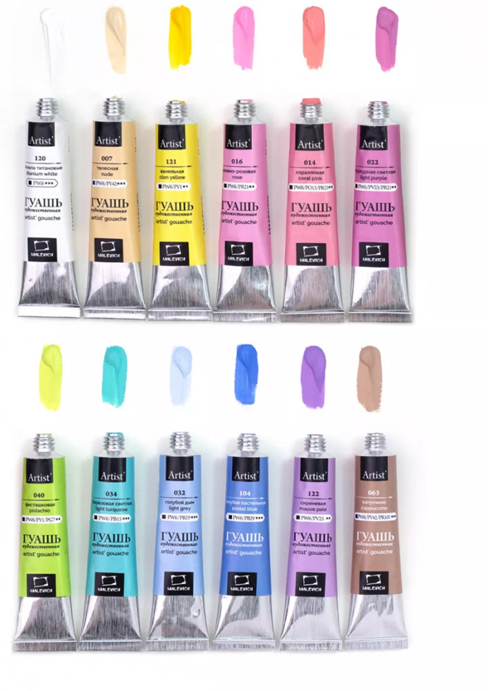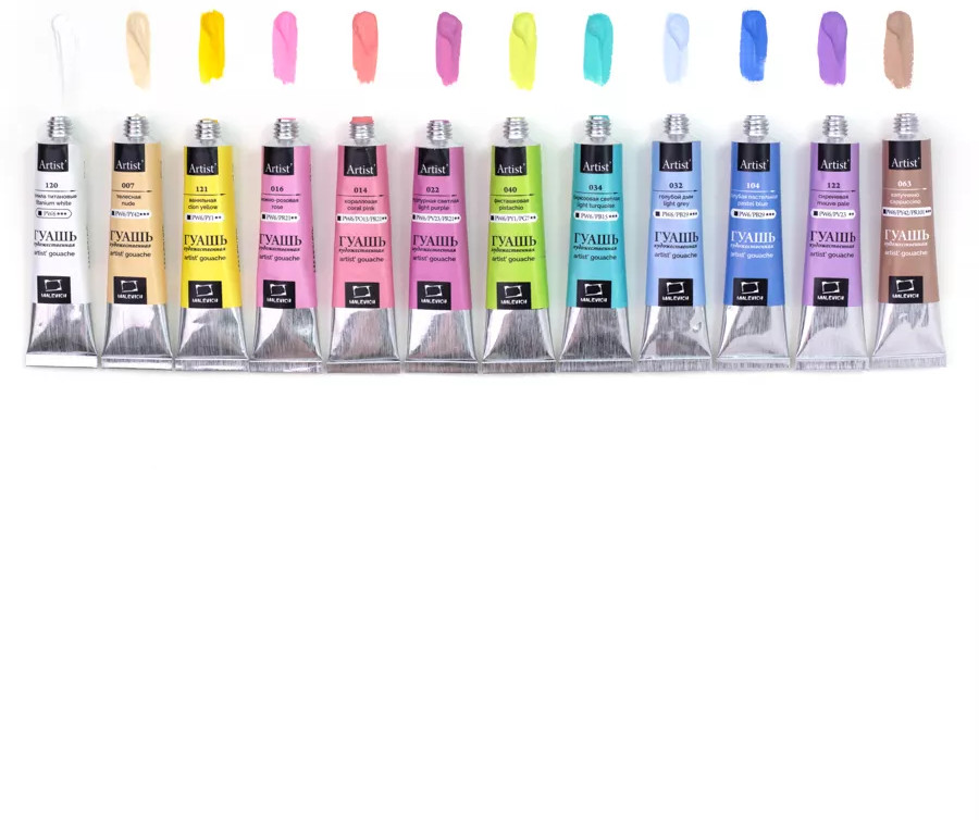 МалевичЪ Набор гуаши-20% +102 нежные цвета удобные тюбики хорошая текстура не сохнет