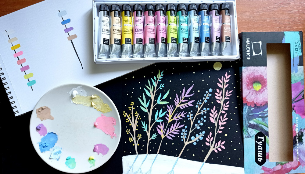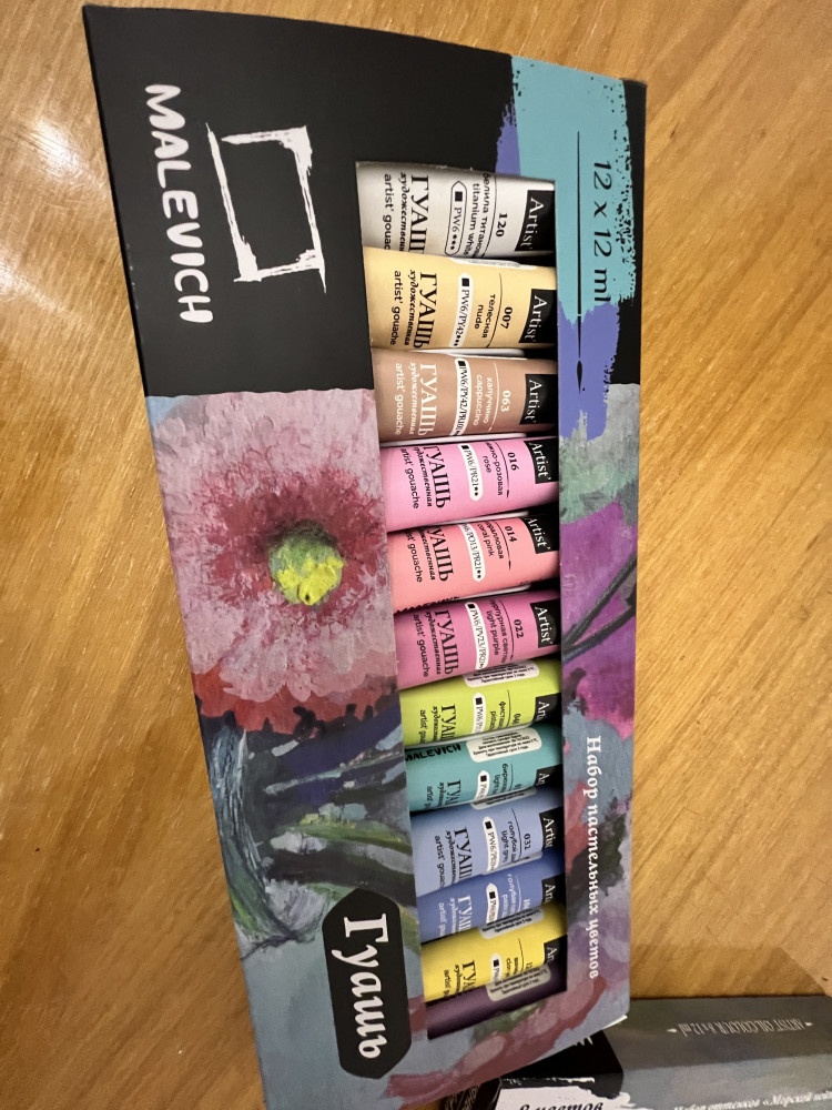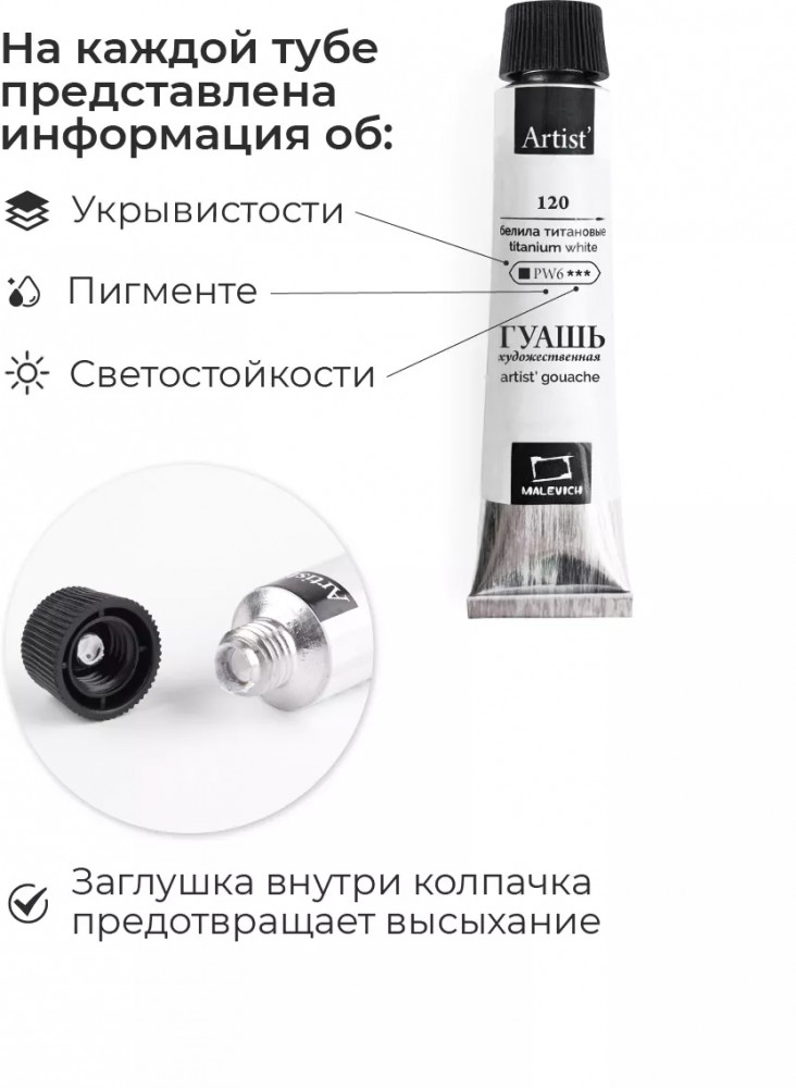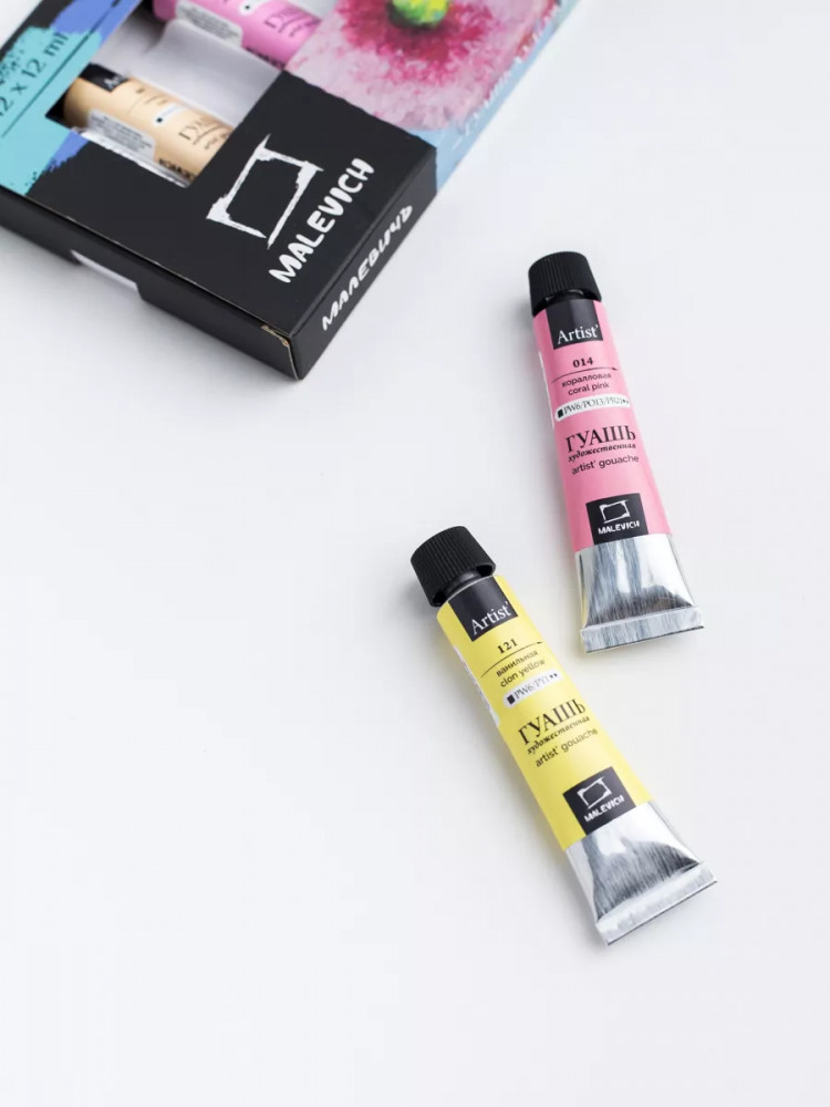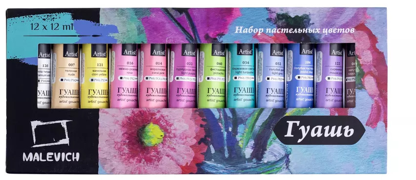 МалевичЪ Набор гуаши-20% +102 нежные цвета удобные тюбики хорошая текстура не сохнет