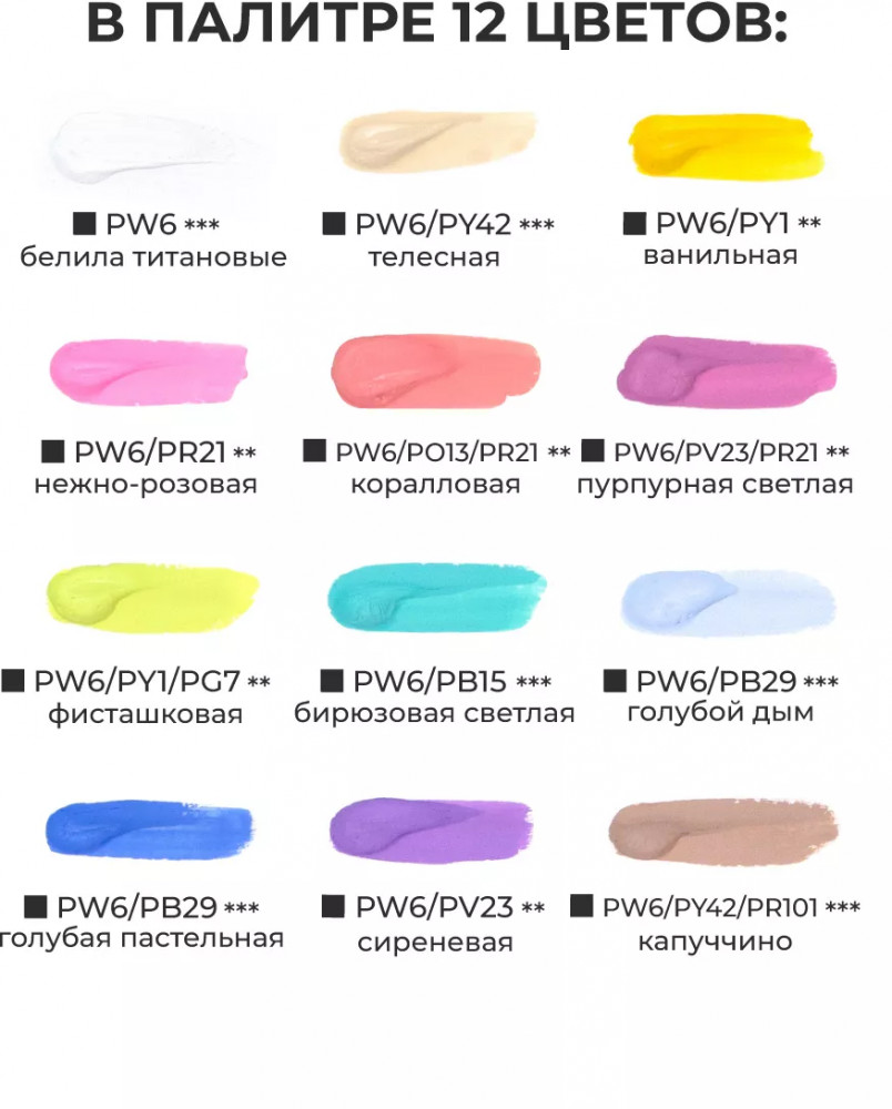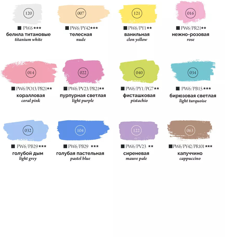 💳 Оплатить за товар можно при получении 🇰🇿 Есть бесплатная доставка по Казахстану от 1 дня 🎁 Копите бонусы с каждой покупки Набор гуаши Малевичъ, пастельные цвета, 12 цветов по 12 мл. Специальная серия для любителей пастельных цветов и нежности. Водорастворимая, комфортная для работы краска с приятной кремовой консистенцией и повышенной концентрацией пигмента. Высокая кроющая способность позволяет наносить четкие мелкие непрозрачные детали светлых тонов на фон темного оттенка. После высыхания поверхность становится бархатисто-матовой. Подходит как для начинающих, так и для профессиональных иллюстраторов. Удобный формат для тех, кто любит рисовать на пленерах и скетчить в городе. Гуашь просто выдавить, просто смешать и рисовать. |