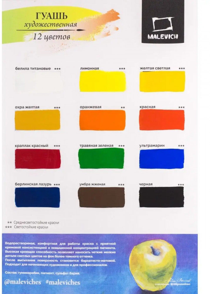 МалевичЪ Гуашь, белила титановые-20% +95 густота качество