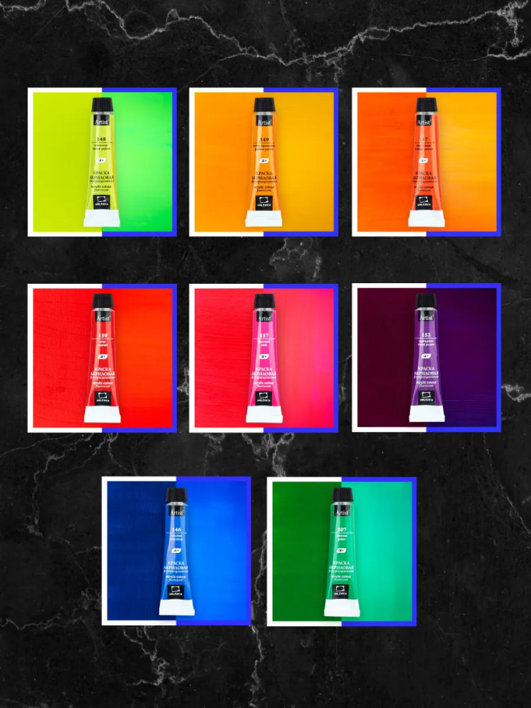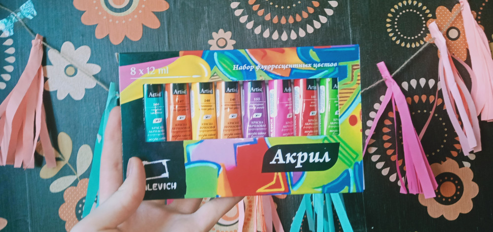 💳 Оплатить за товар можно при получении 🇰🇿 Есть бесплатная доставка по Казахстану от 1 дня 🎁 Копите бонусы с каждой покупки Набор флуоресцентных акриловых красок Малевичъ, 8×12 мл. Специальный выпуск для любителей яркого! Очень яркий и чистый цвет в ультрафиолете. Можно использовать свое воображение для написания картины, декоритования одежды и аксессуаров. Акриловые краски Matisso — это художественный глянцевый акрил для требовательных к качеству покупателей. В производстве используются только высококачественные светостойкие пигменты, которые обеспечивают сохранность будущего шедевра. Акрил — универсальная краска и подходит для рисования и росписи по любой поверхности. Разбавляется водой. Быстро сохнет и образует стойкую, нерастворимую пленку с глянцевым финишем. |