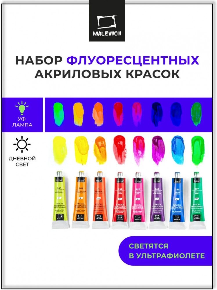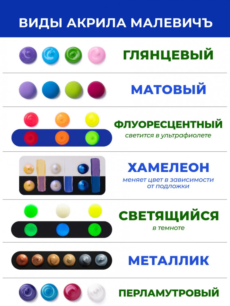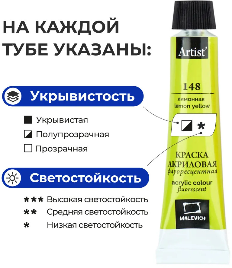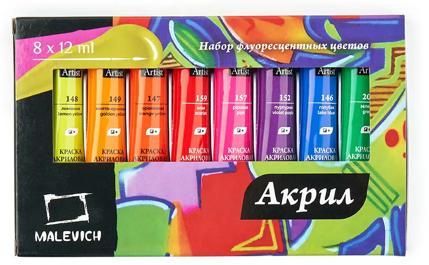 МалевичЪ Набор акриловых красок-20% +85 яркие цвета насыщенный цвет стойкость цвета жидкая краска нет белого