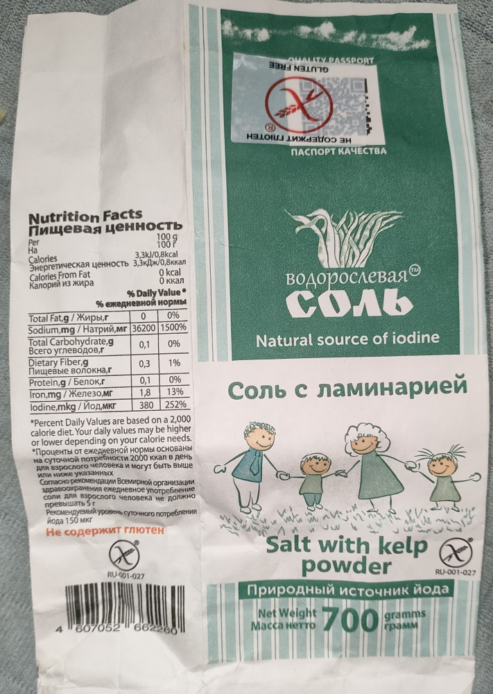 . Соль с ламинарией супер! Мне понравилась . Жаль что у вас нет в продаже, теперь не могу найти. Соль с ламинарией хорошо тем у кого давление высокий . У меня высокая давление бывает если начинаю солить много . А соленая я люблю . С ламинарией не каких проблем не было , могла пересолить и все хорошо, забыла даже про давление. Пожалуйста верните соль с ламинарий на продажу.