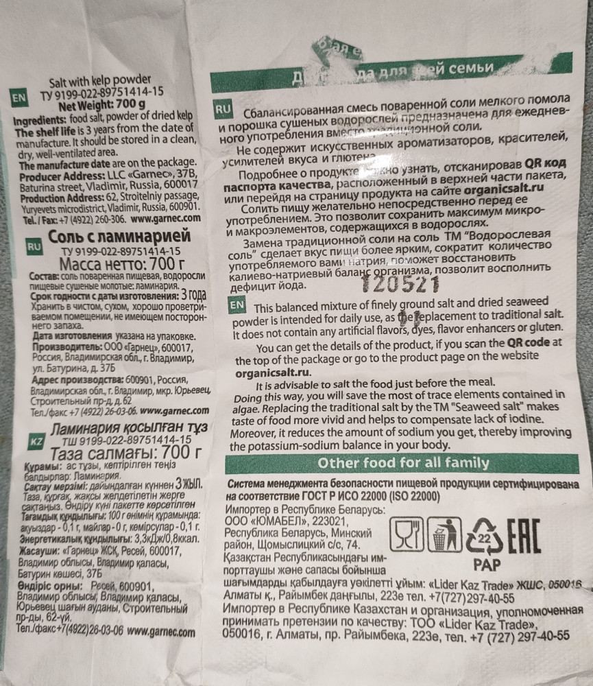 Мне очень понравилось соль,брала для соления свежих салатов и добавляю когда жарю яйчнецу
